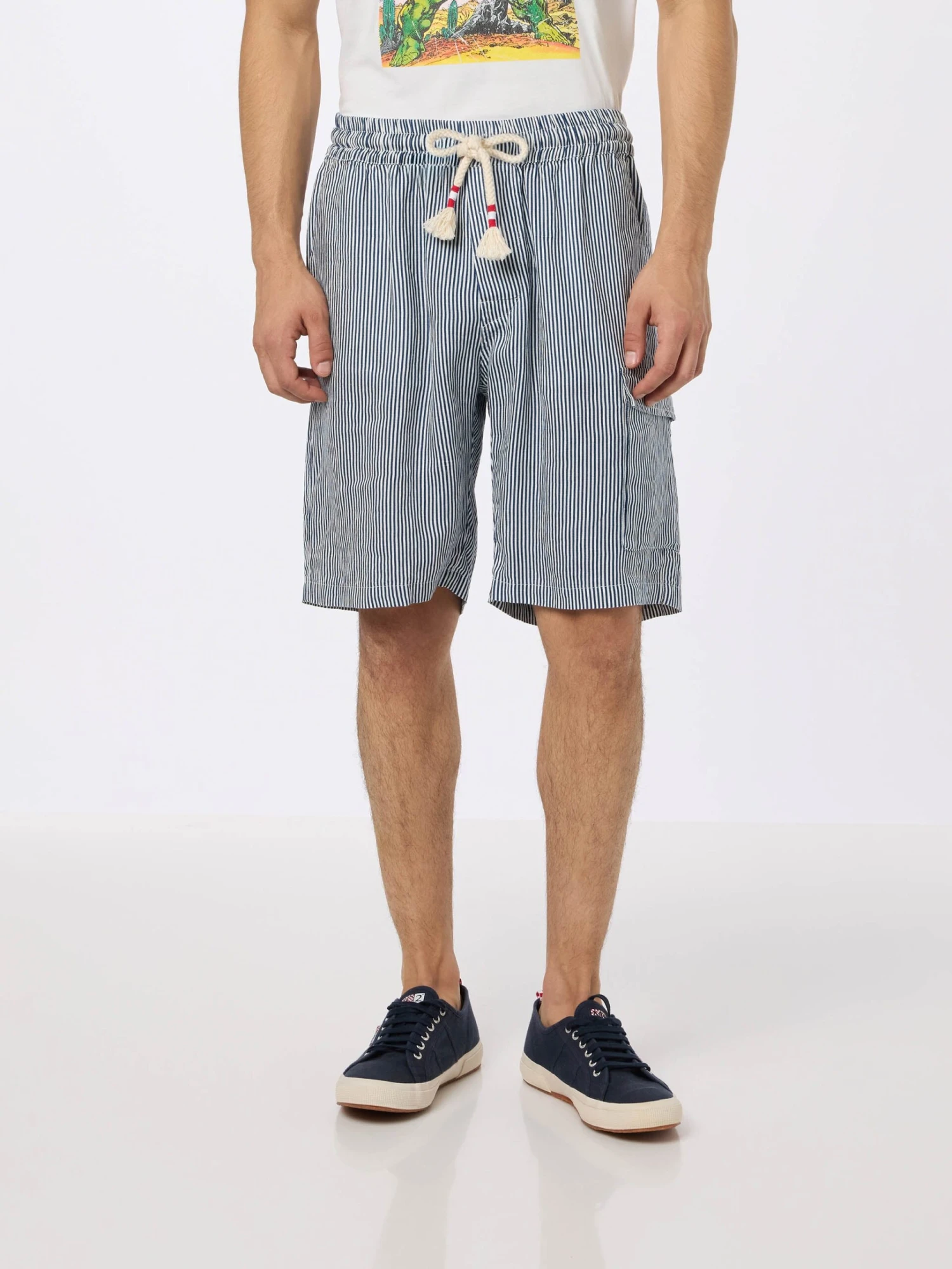 MC2 Saint Barth Man Blue Striped Linen Bermuda Marseille