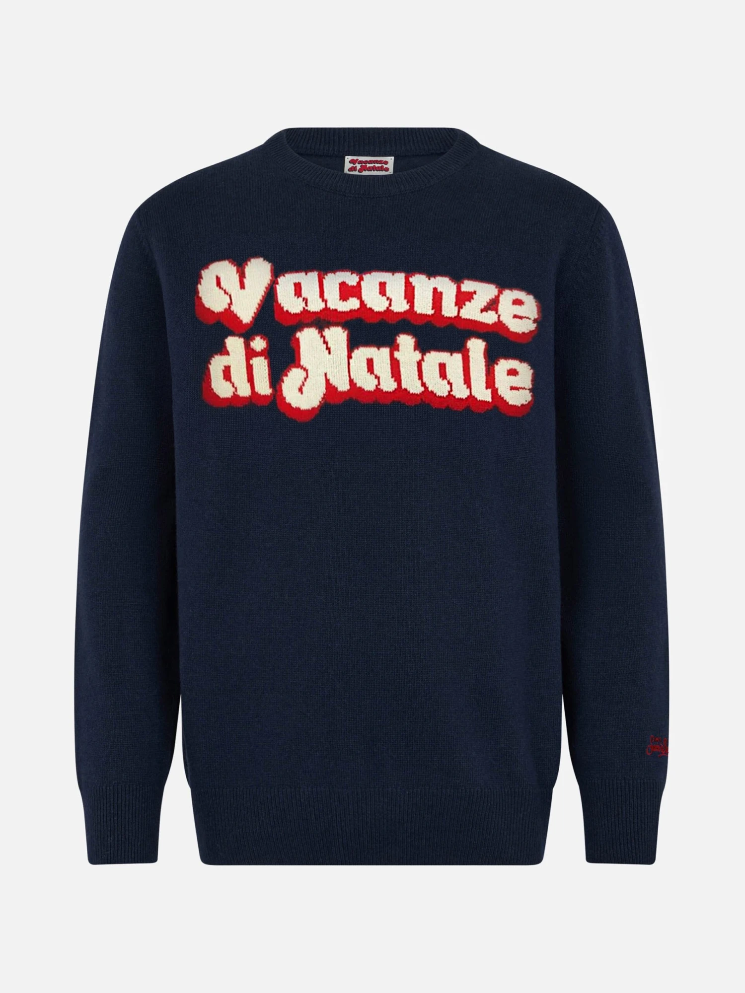 MC2 Saint Barth Man Blue Sweater Heron With Vacanze Di Natale Logo Jacquard | VACANZE DI NATALE SPECIAL EDITION