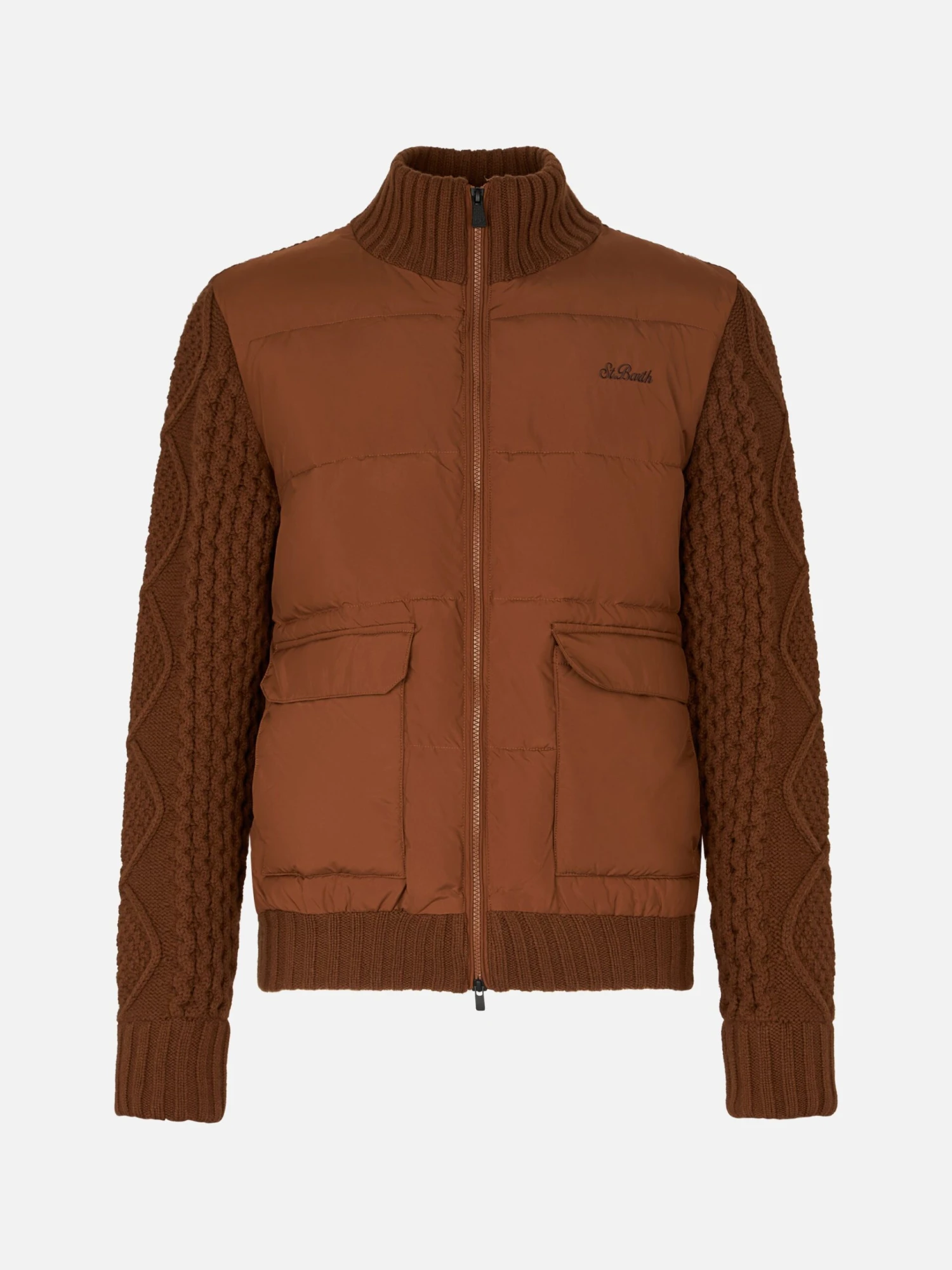 MC2 Saint Barth Man Brown Padded Jacket With Knitted Sleeves