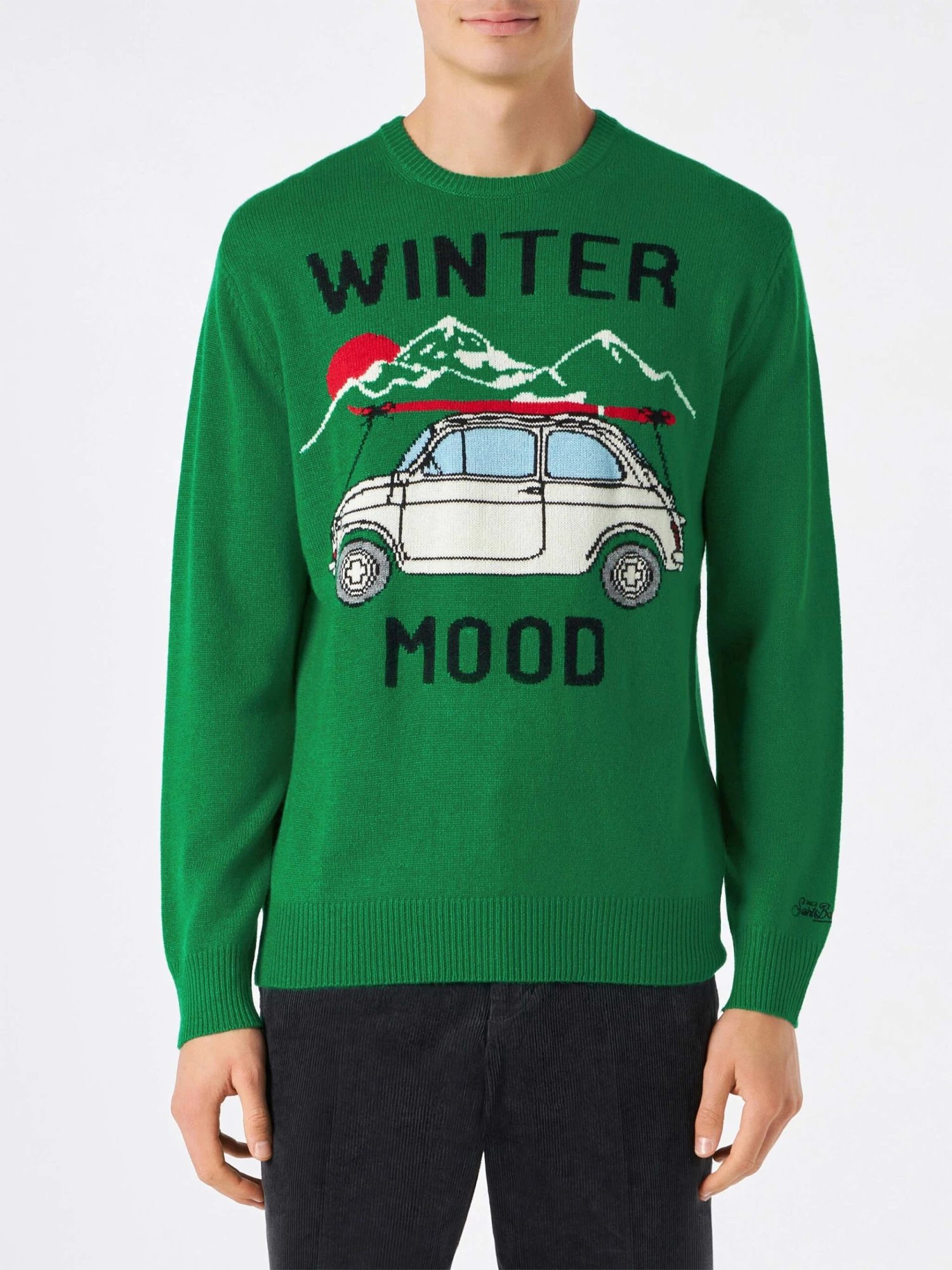 MC2 Saint Barth Man Cashmere Blend Sweater With Fiat 500 Jacquard | FIAT 500 SPECIAL EDITION