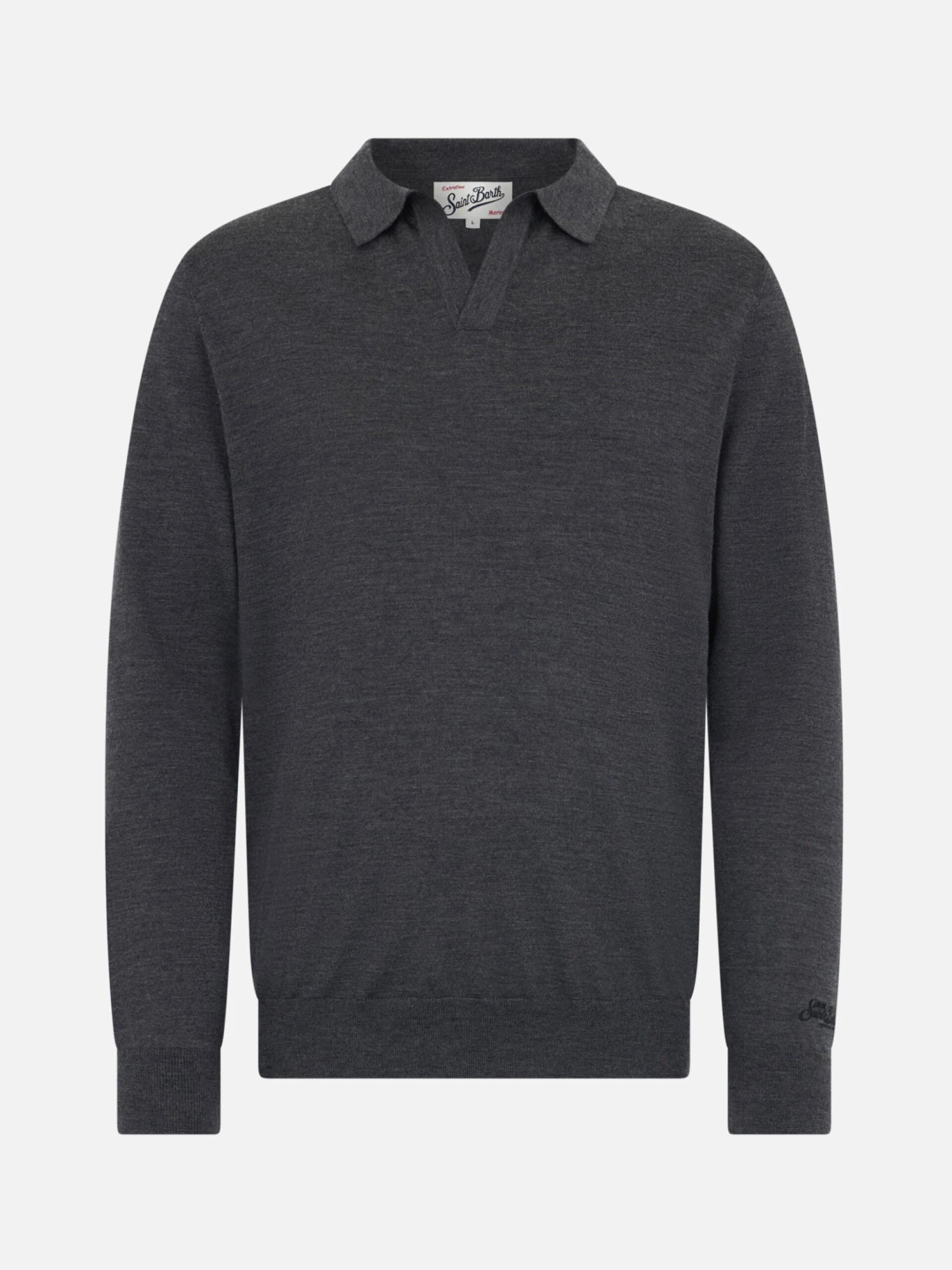 MC2 Saint Barth Man Charcoal Merino Wool Polo Covent