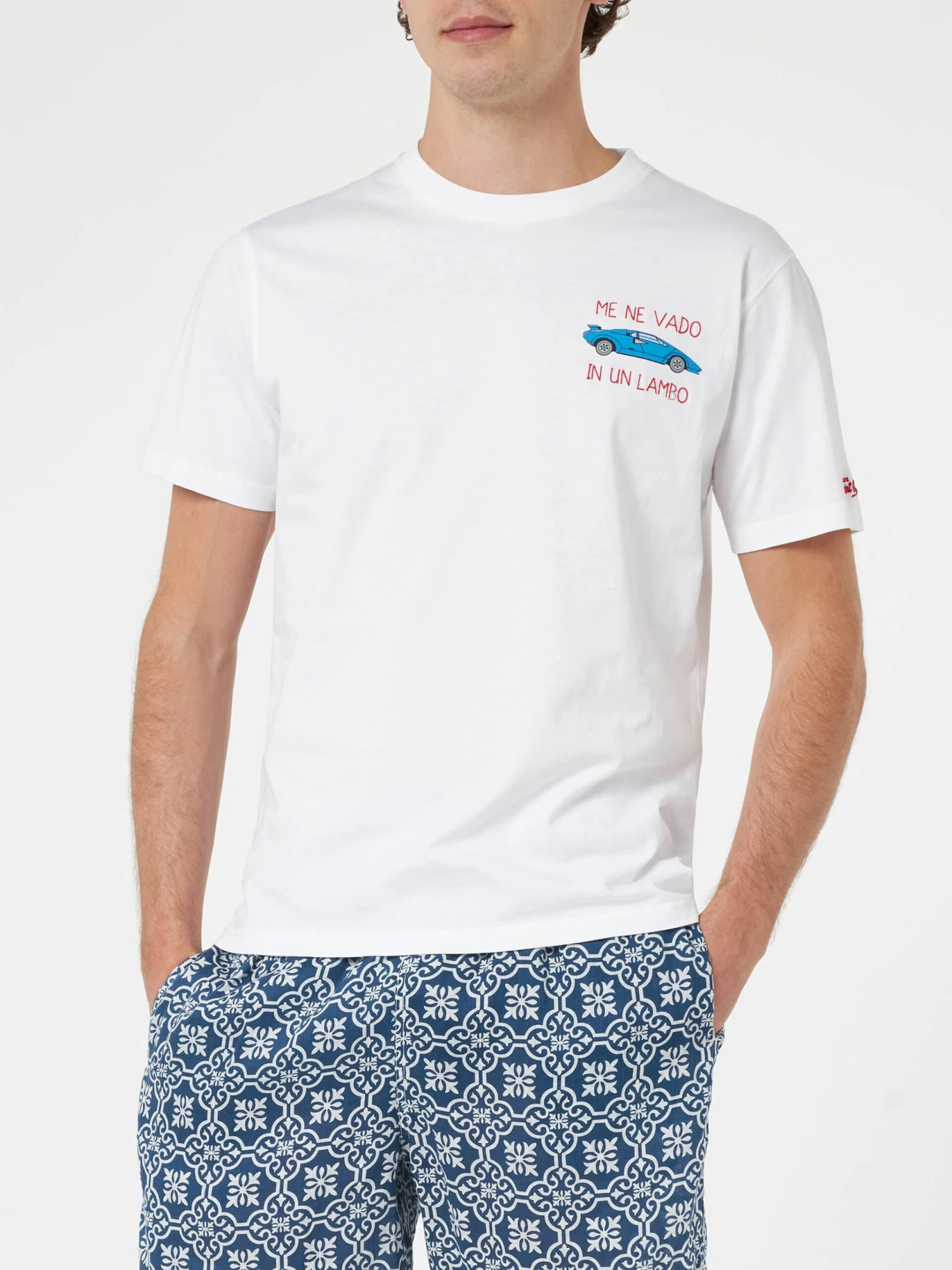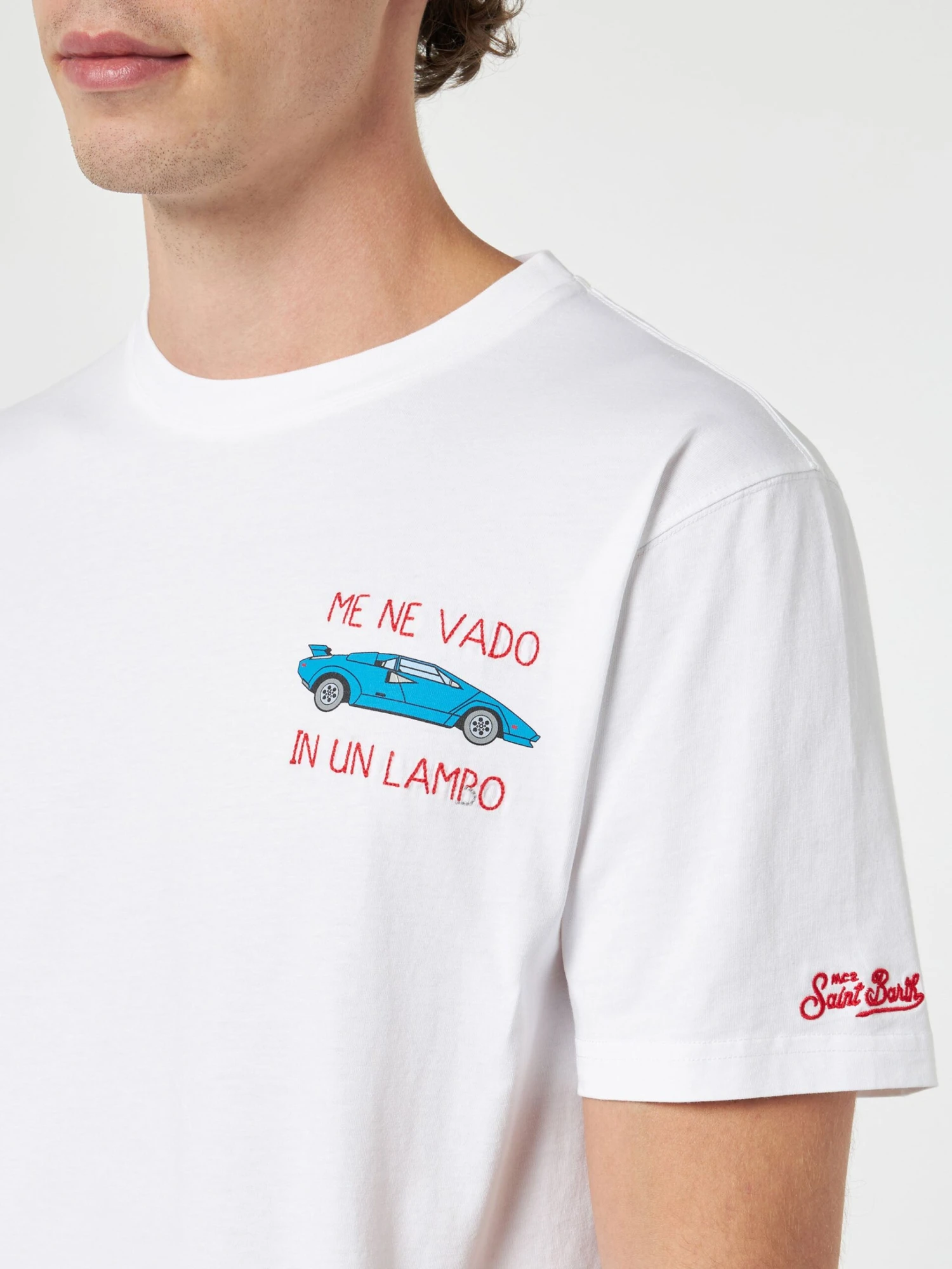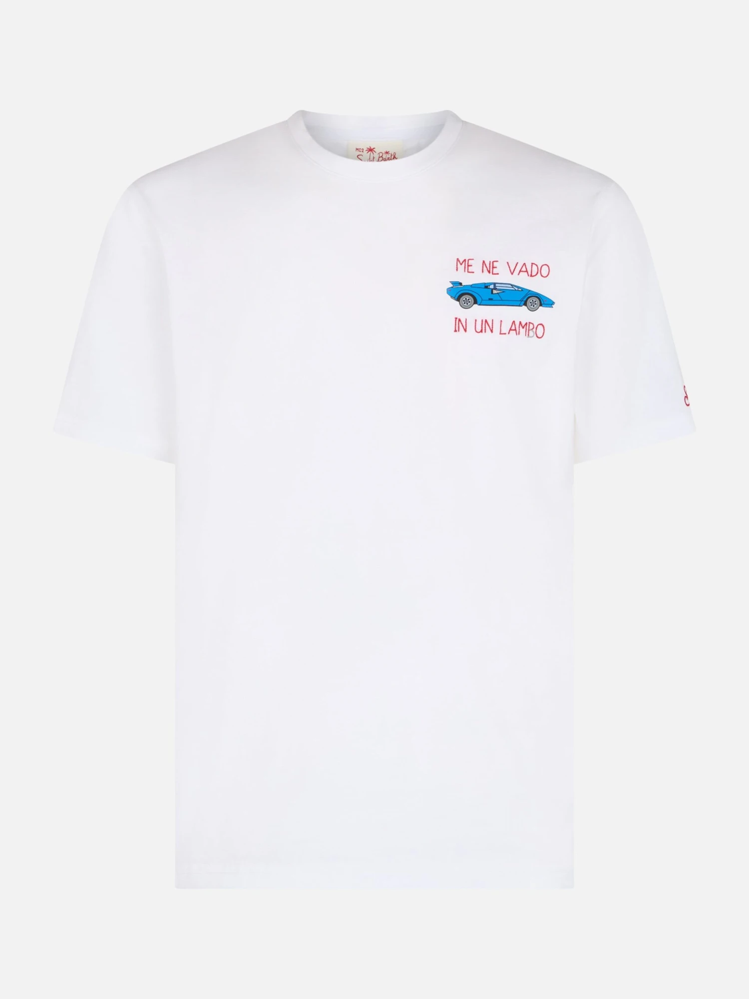MC2 Saint Barth Man Cotton T-shirt With Me Ne Vado In Un Lambo Embroidery And Car Placed Print