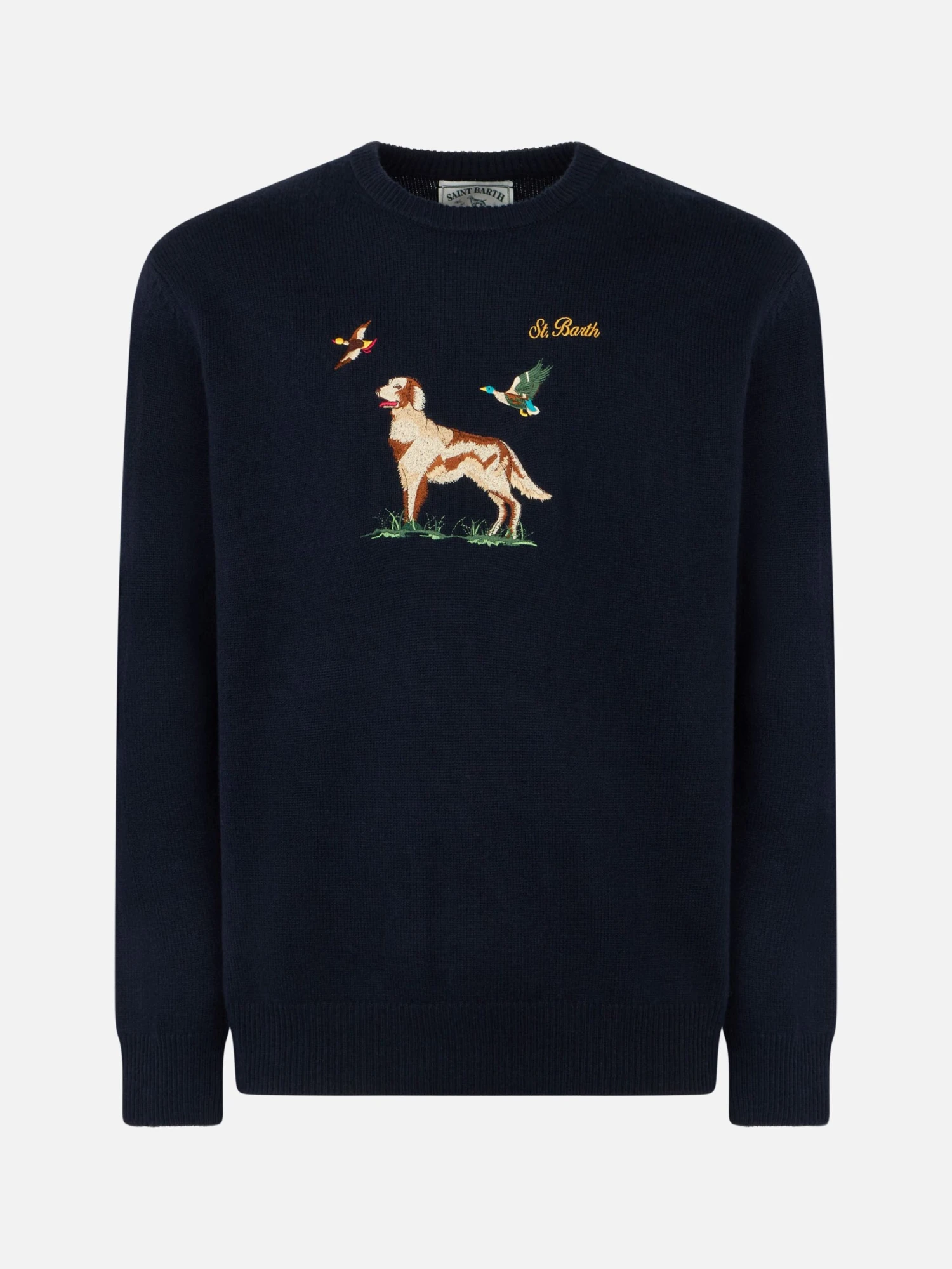 MC2 Saint Barth Man Crewneck Donegal Sweater With English Pointer Jacquard