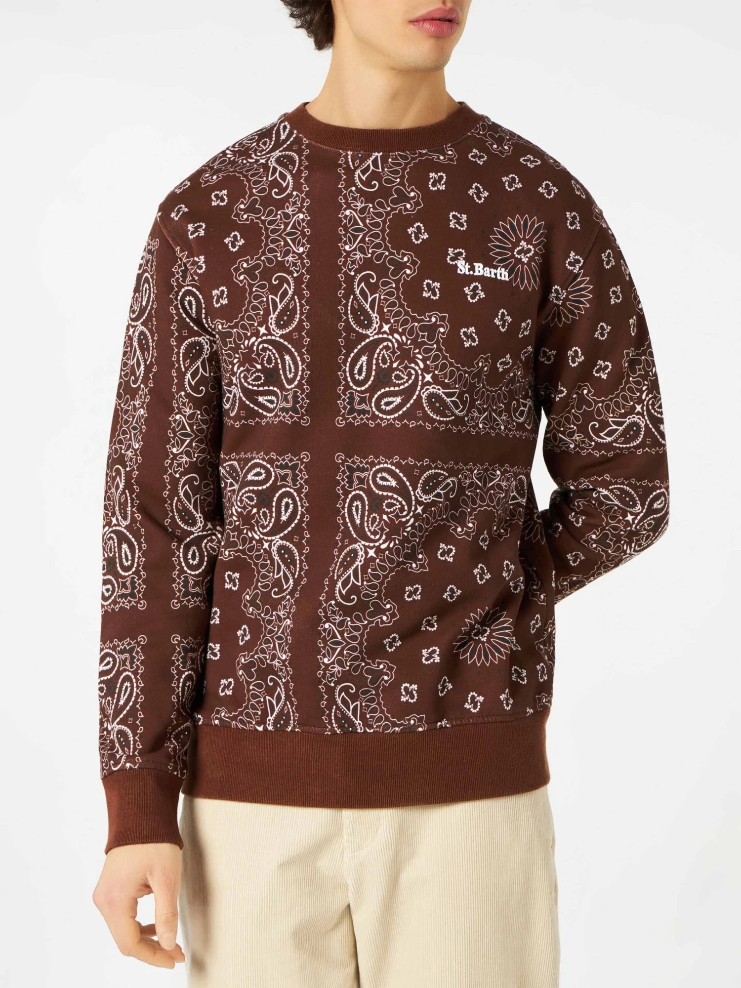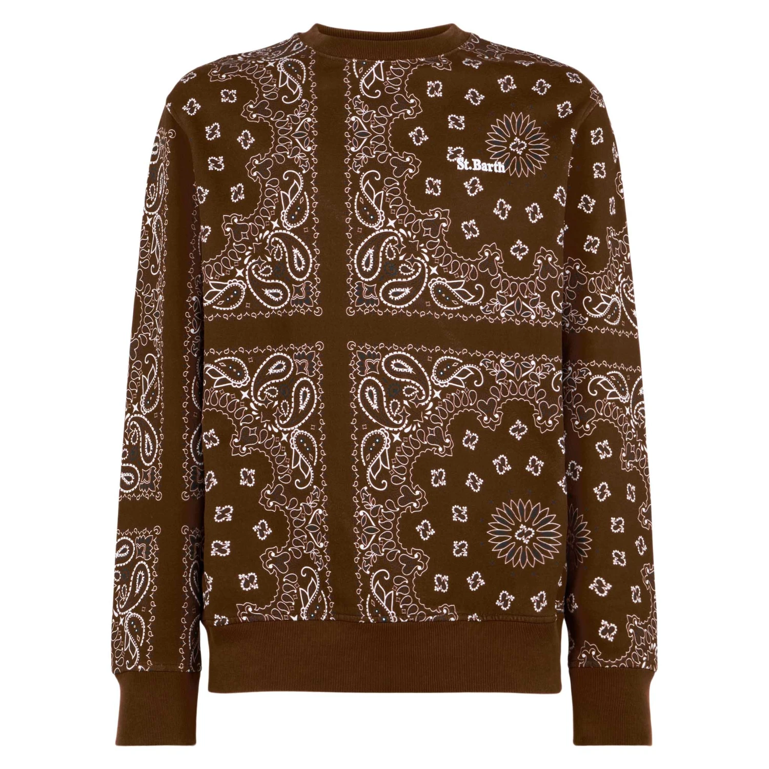 MC2 Saint Barth Man Crewneck Sweatshirt With Brown Bandanna Print
