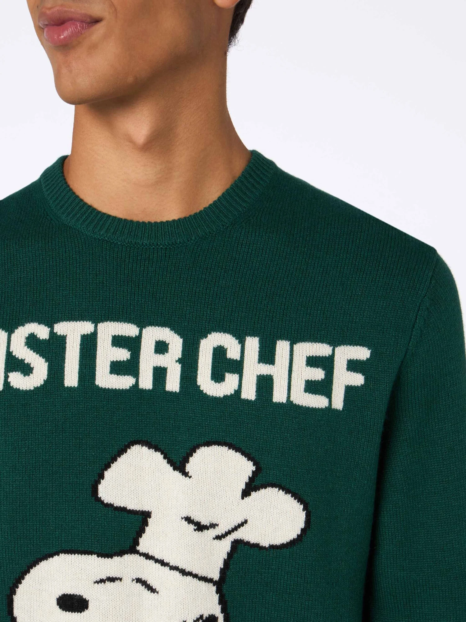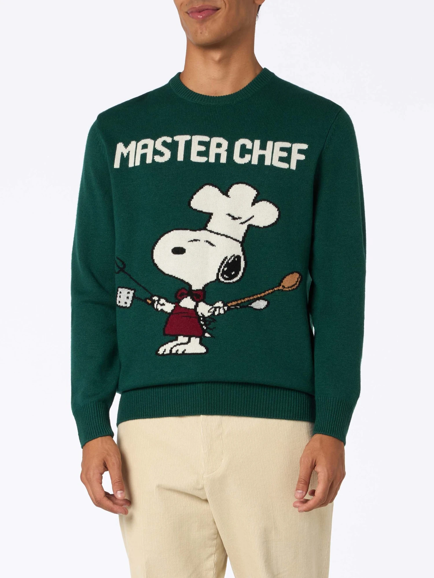 MC2 Saint Barth Man Green Sweater Heron With Snoopy Master Chef | SNOOPY PEANUTS SPECIAL EDITION