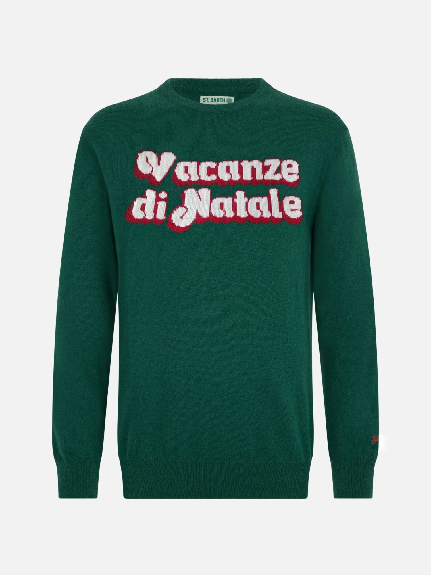 MC2 Saint Barth Man Green Sweater Heron With Vacanze Di Natale Logo Jacquard | VACANZE DI NATALE SPECIAL EDITION