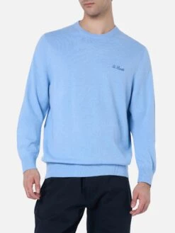 MC2 Saint Barth Man Light Blue Blended Cashmere Crewneck Sweater Regent