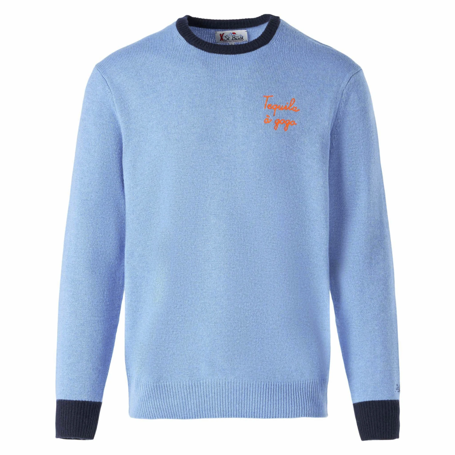 MC2 Saint Barth Man Light Blue Sweater With Tequila à Gogo Embroidery
