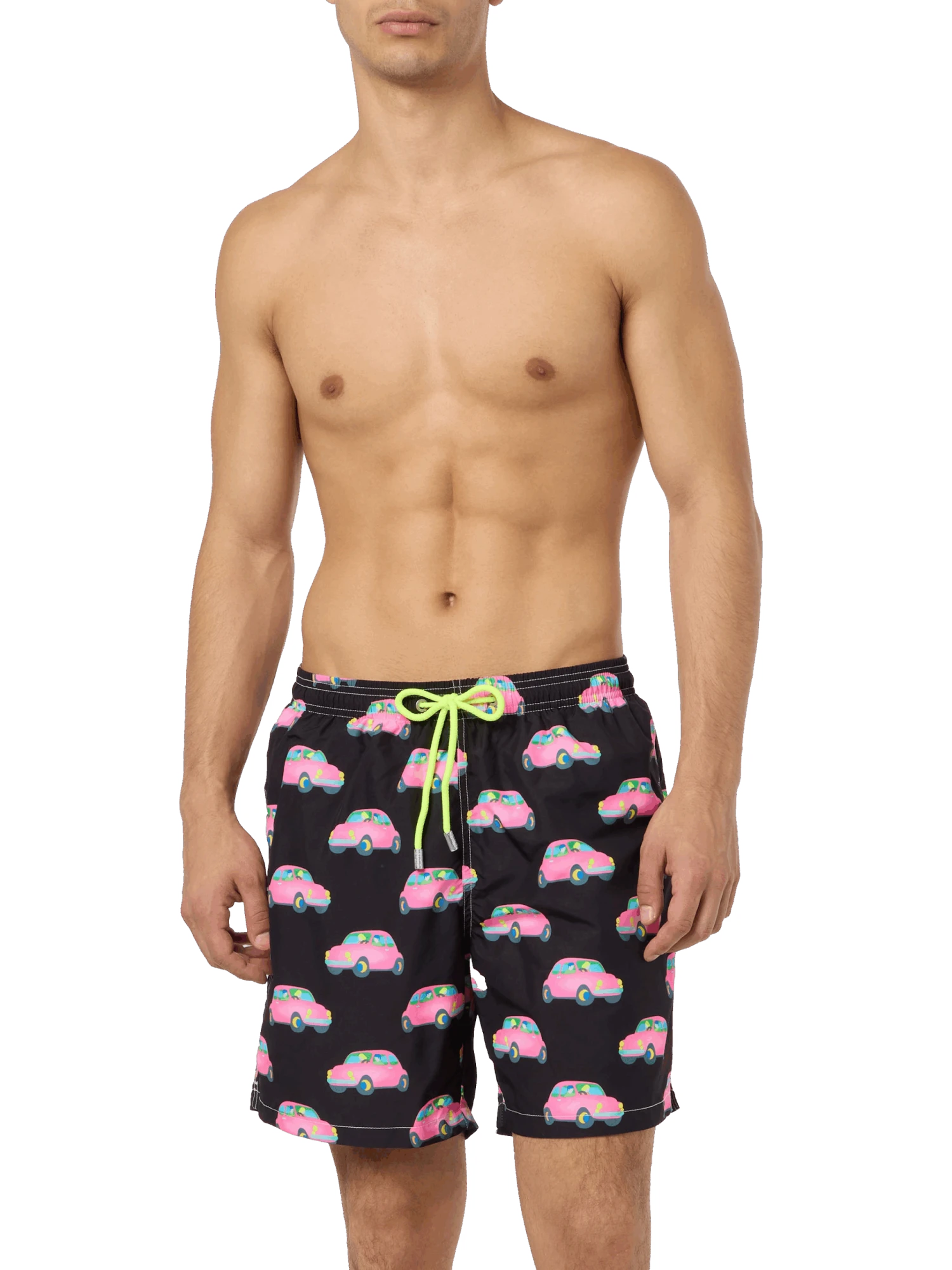 MC2 Saint Barth Man Light Fabric Swim Shorts With Cars Print | MARCO LODOLA SPECIAL EDITION