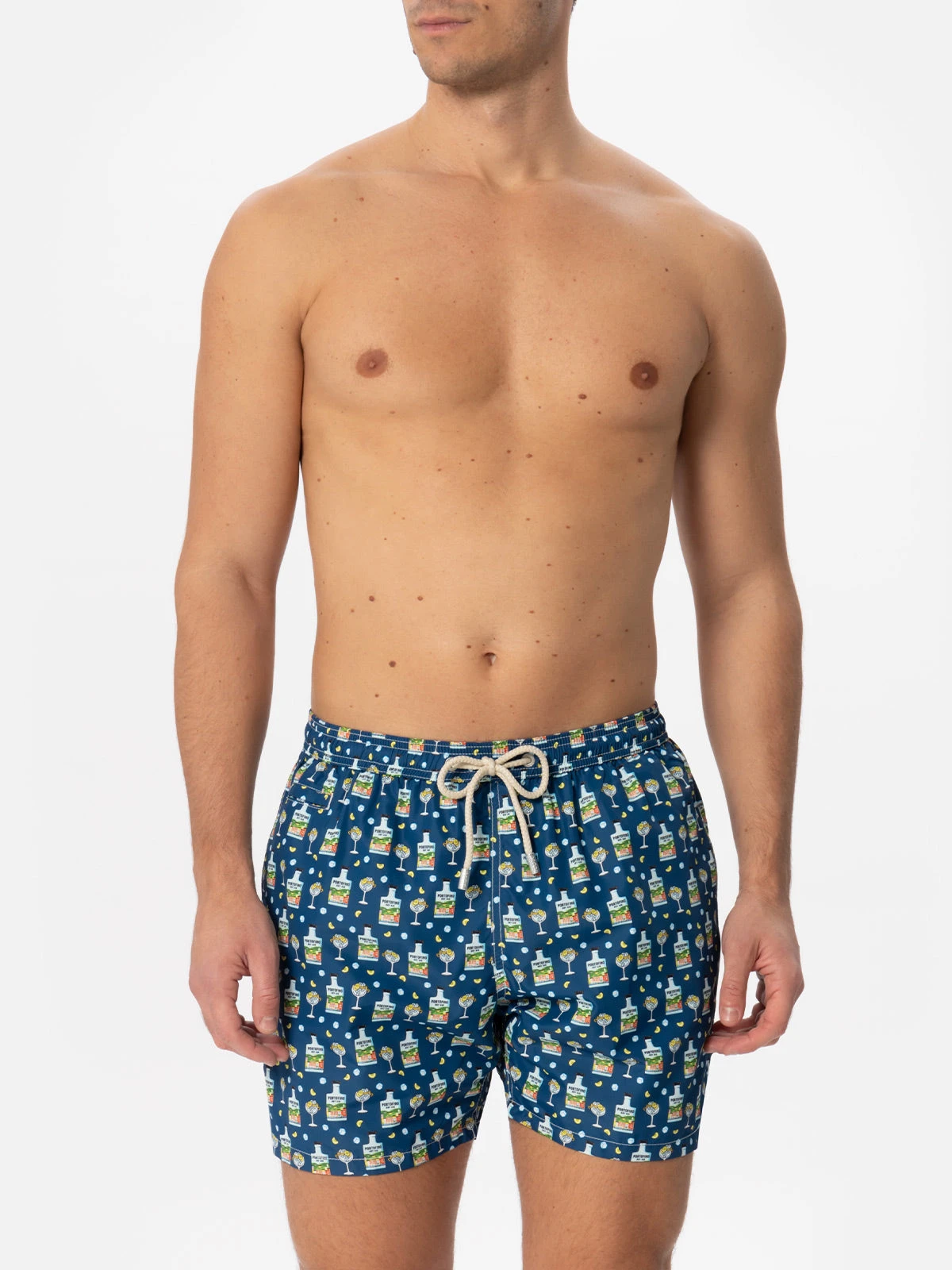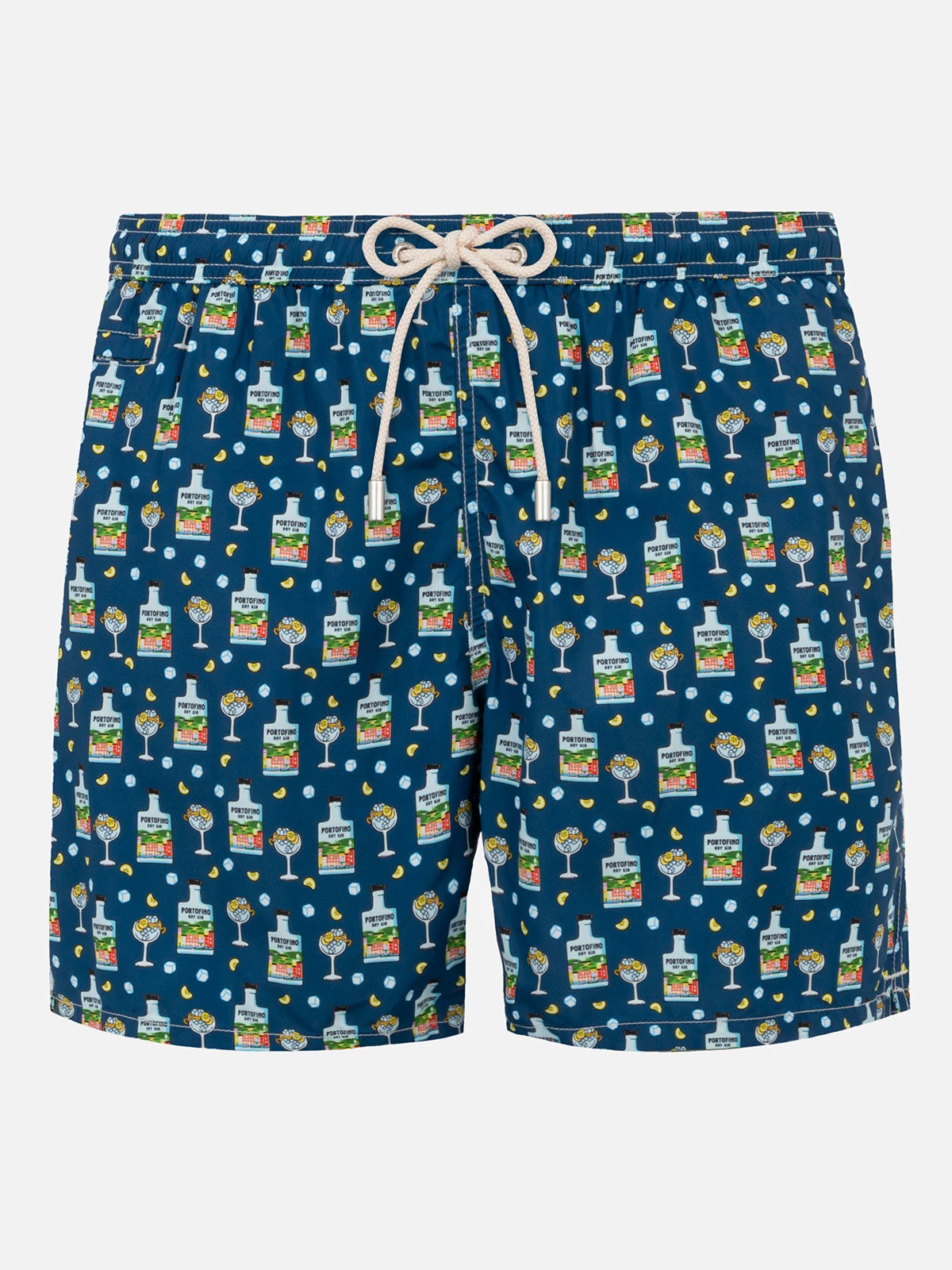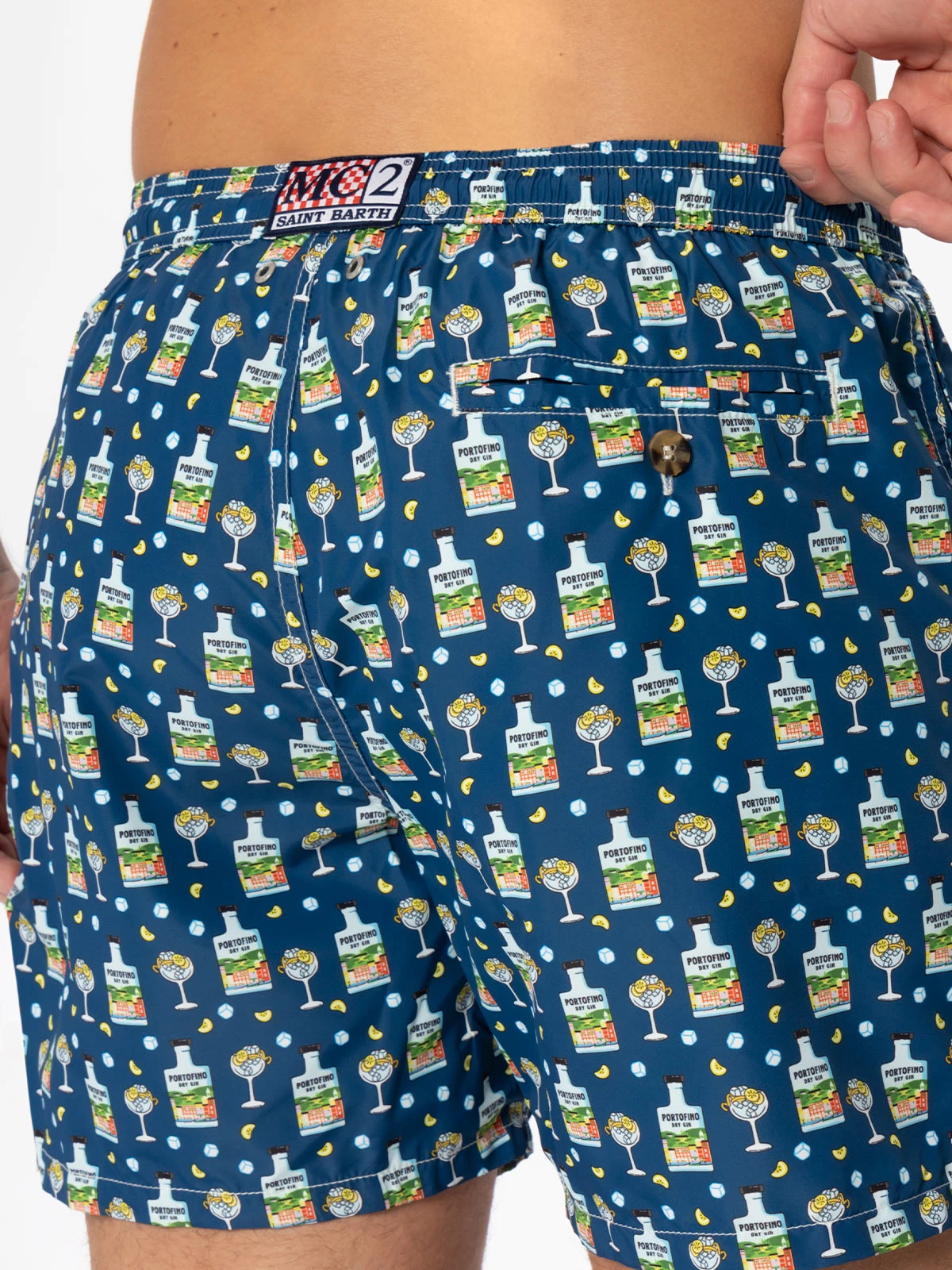 MC2 Saint Barth Man Light Fabric Swim Shorts With Portofino Gin Print | PORTOFINO DRY GIN SPECIAL EDITION