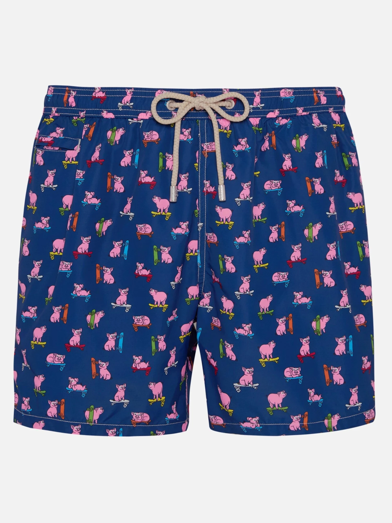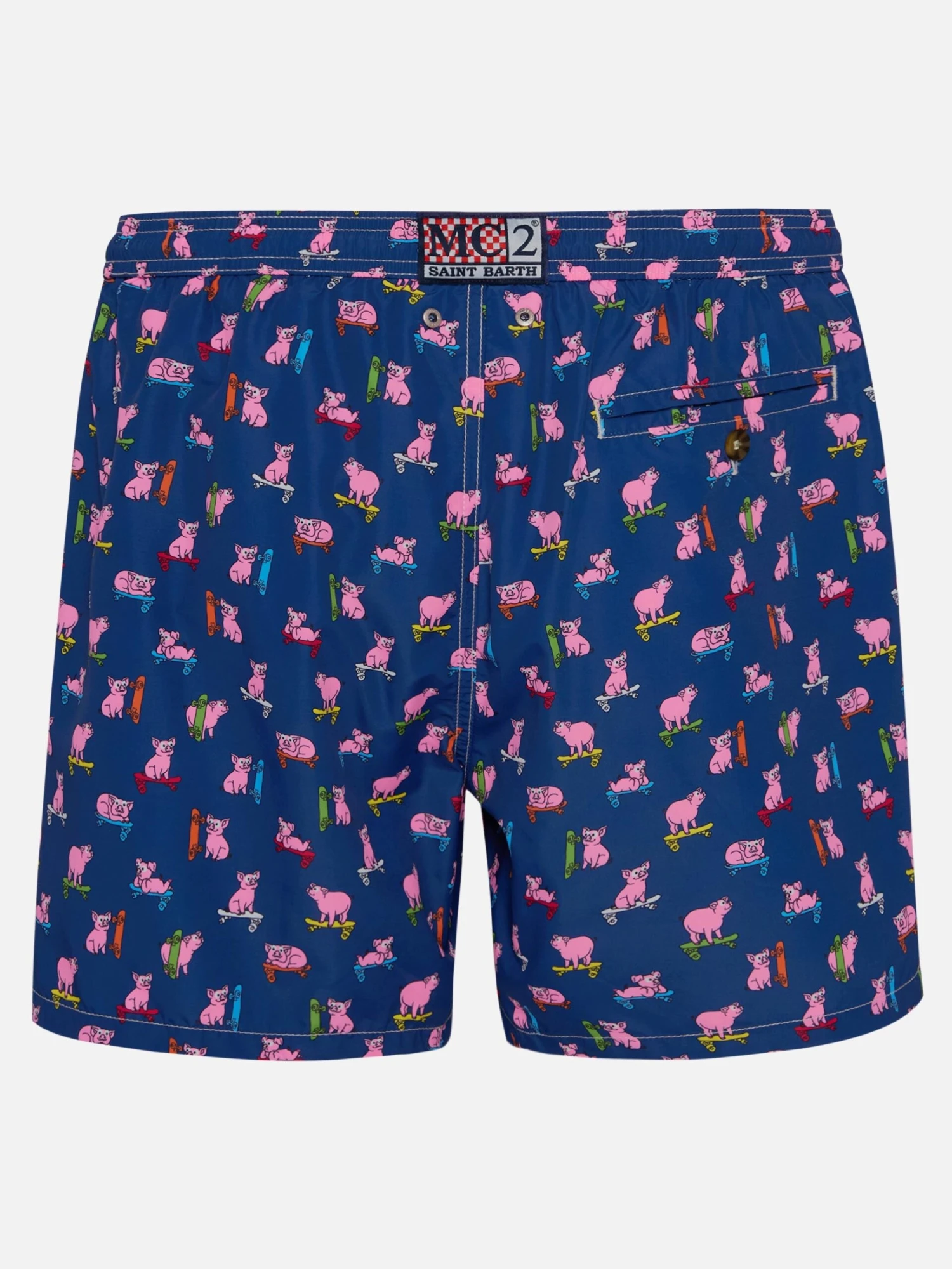 MC2 Saint Barth Man Light Fabric Swim Shorts With Skater Pigs Print