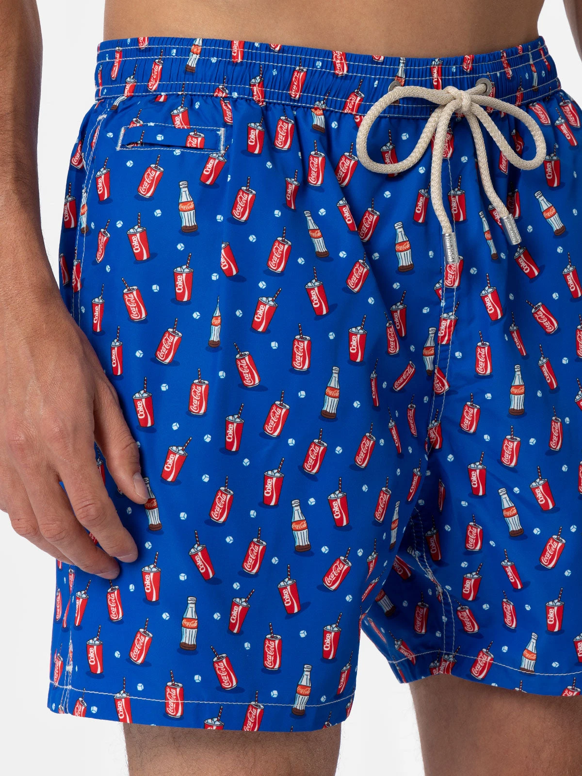 MC2 Saint Barth Man Lightweight Fabric Swim-shorts Lighting Micro Fantasy With Coca Cola Print | THE COCA COLA COMPANY SPECIAL EDITION