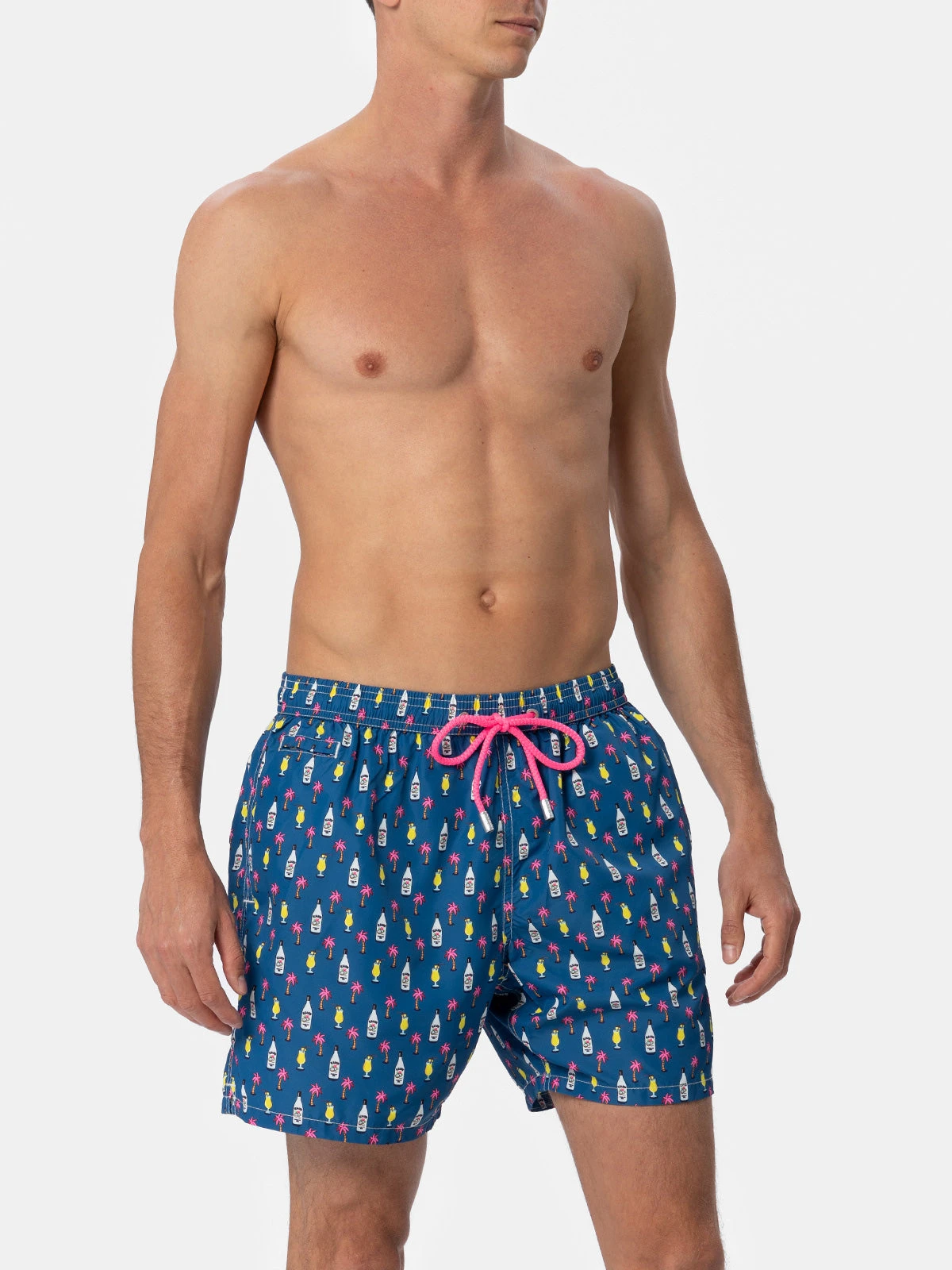 MC2 Saint Barth Man Lightweight Fabric Swim-shorts Lighting Micro Fantasy With Cocktail Print