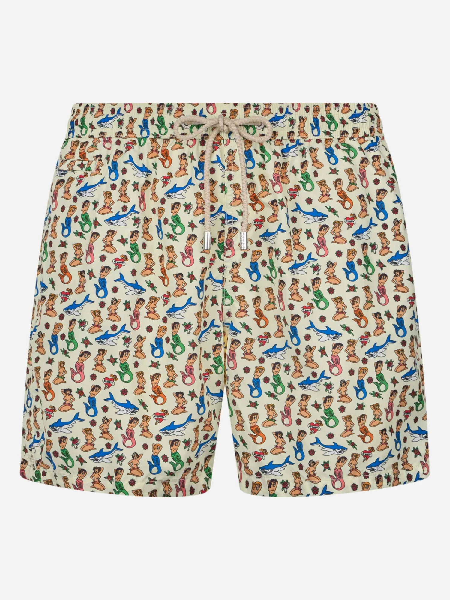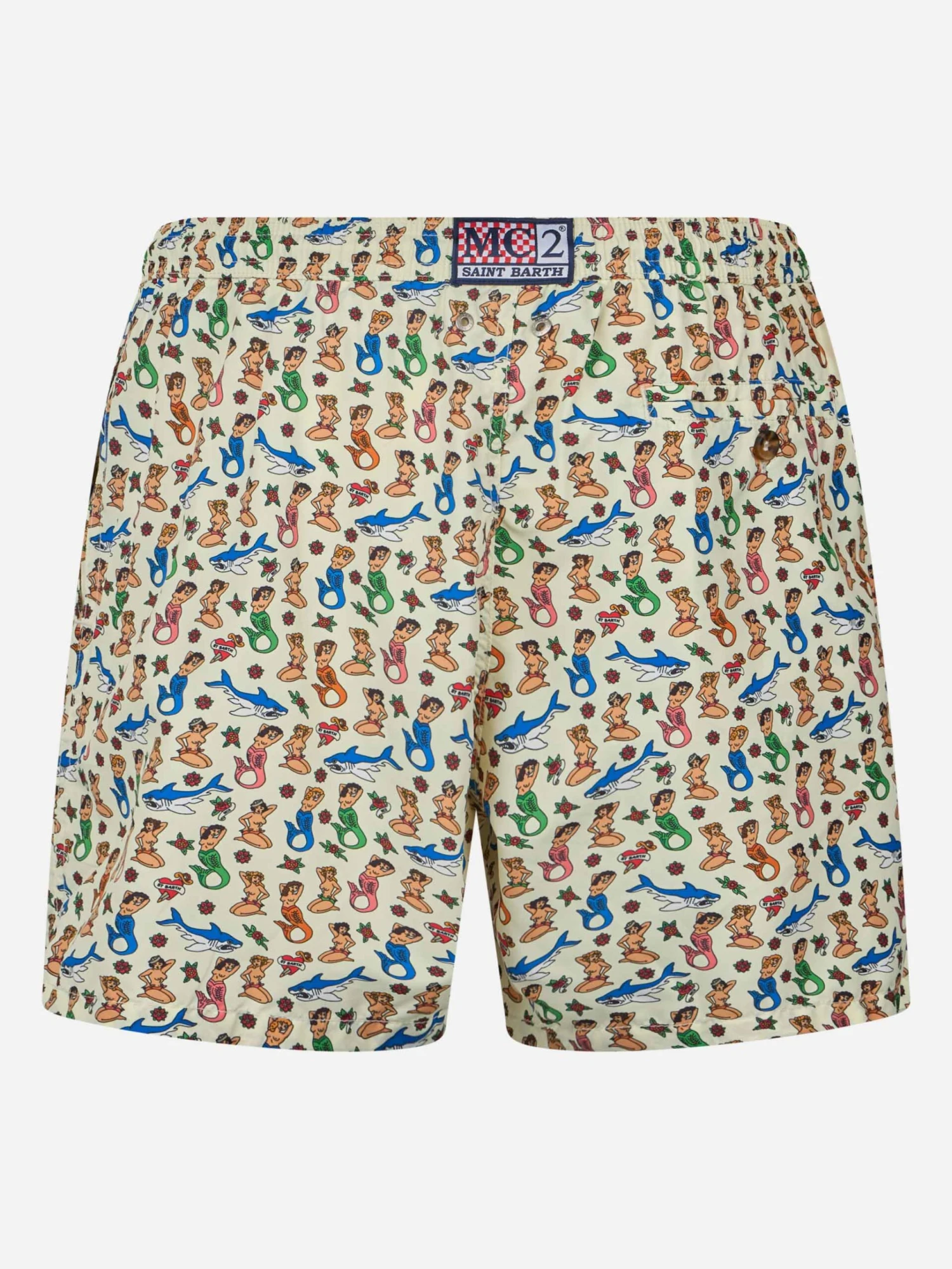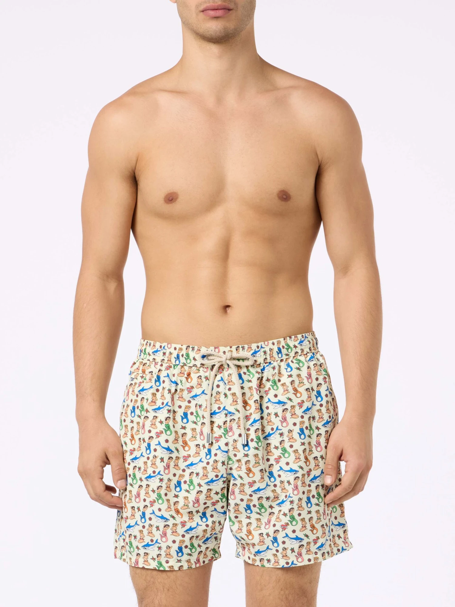 MC2 Saint Barth Man Lightweight Fabric Swim-shorts Lighting Micro Fantasy With Mermaid Print