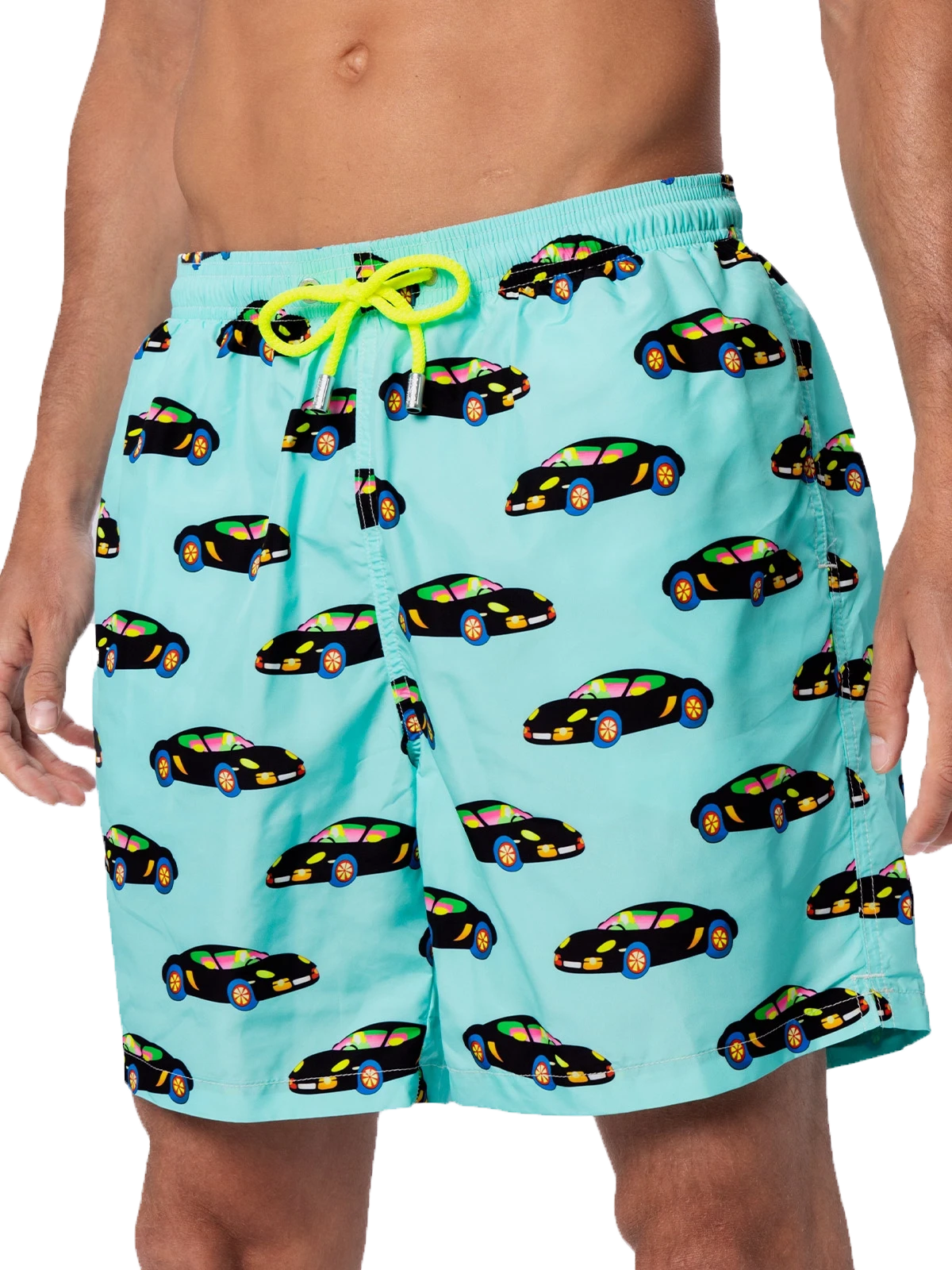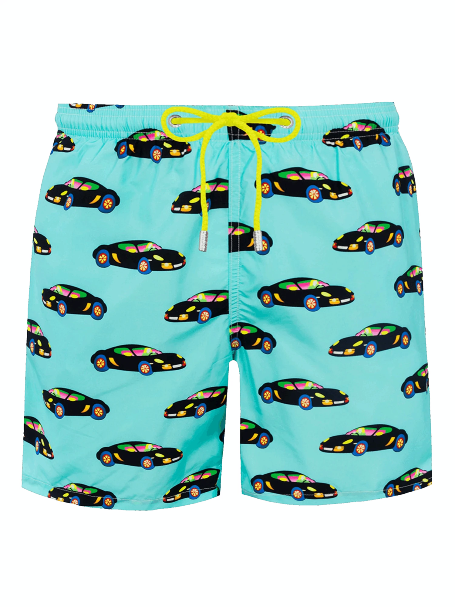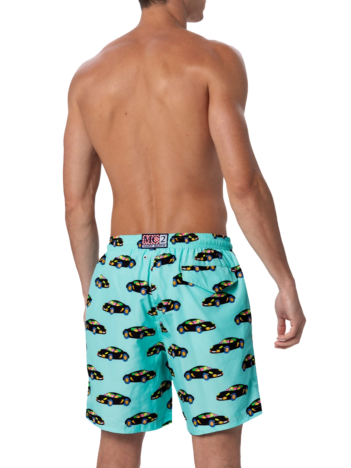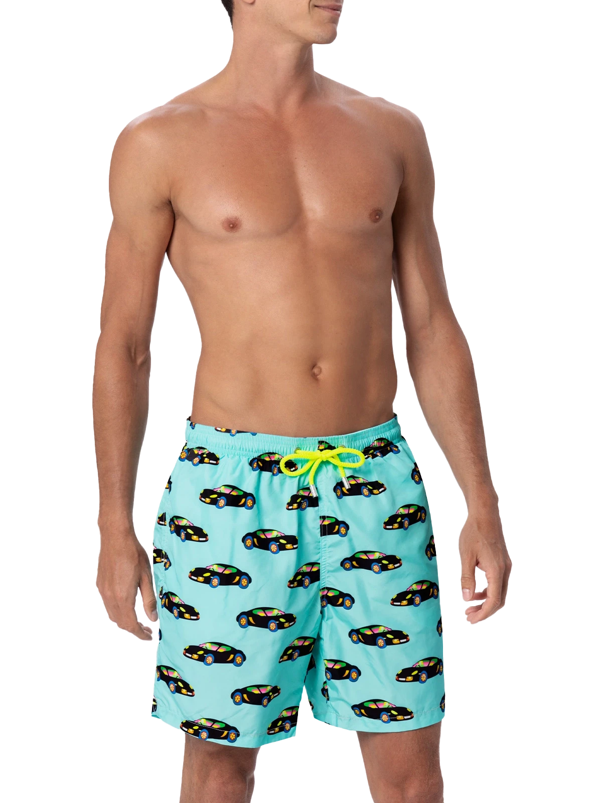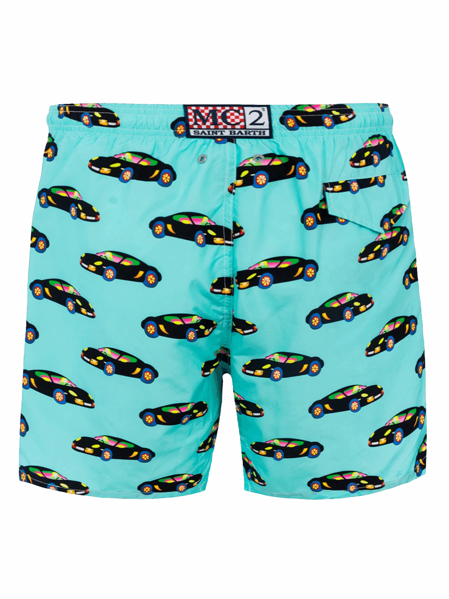MC2 Saint Barth Man Lightweight Fabric Swim-shorts Lighting With Lodola Car Print |MARCO LODOLA SPECIAL EDITION