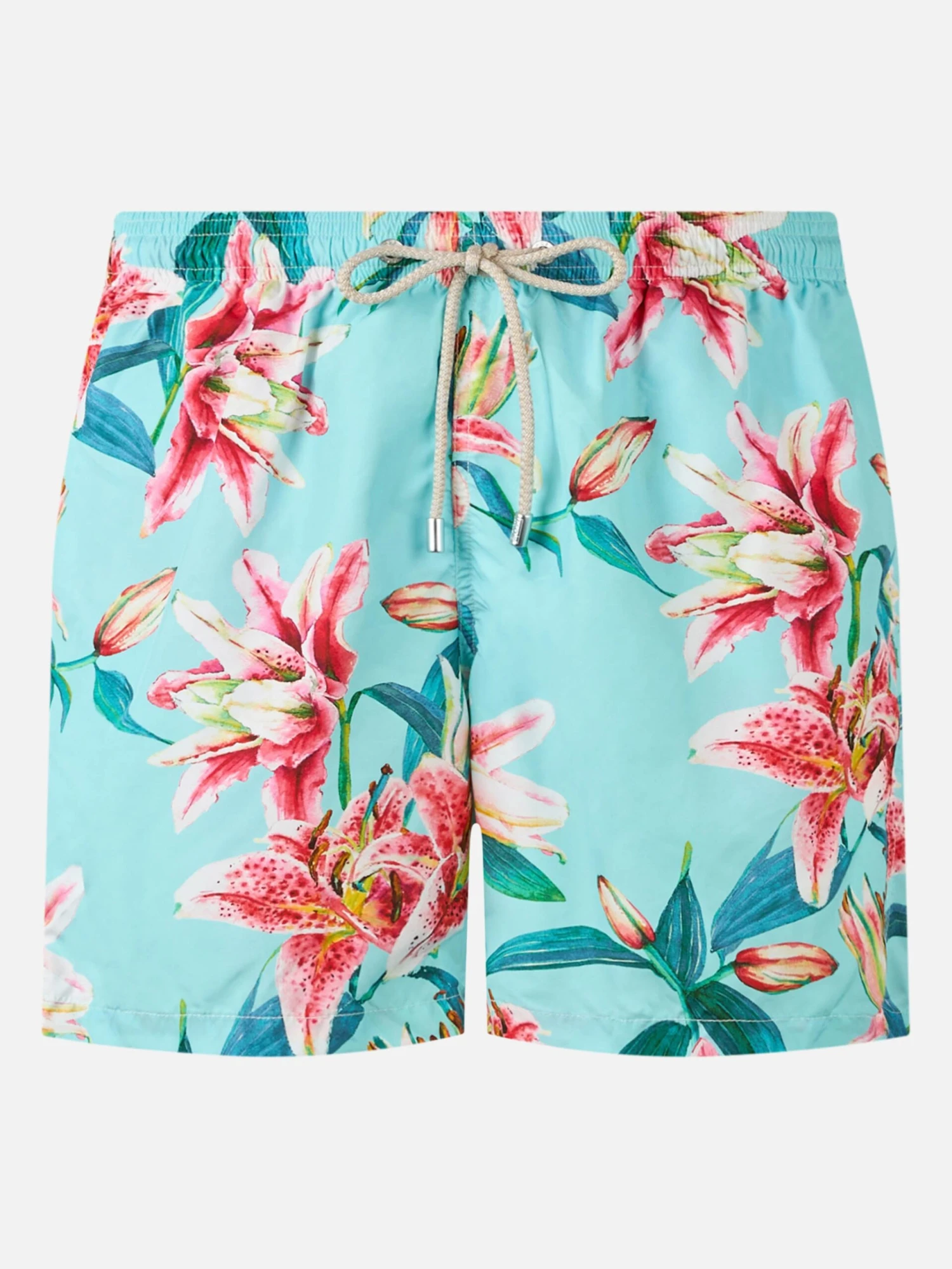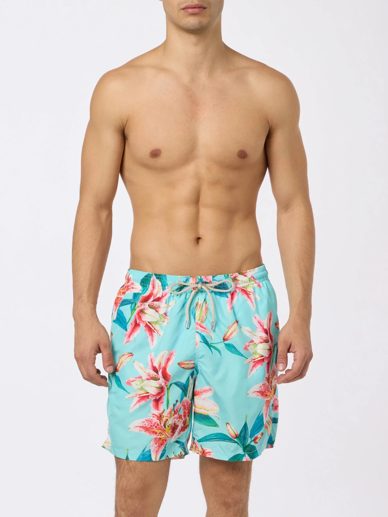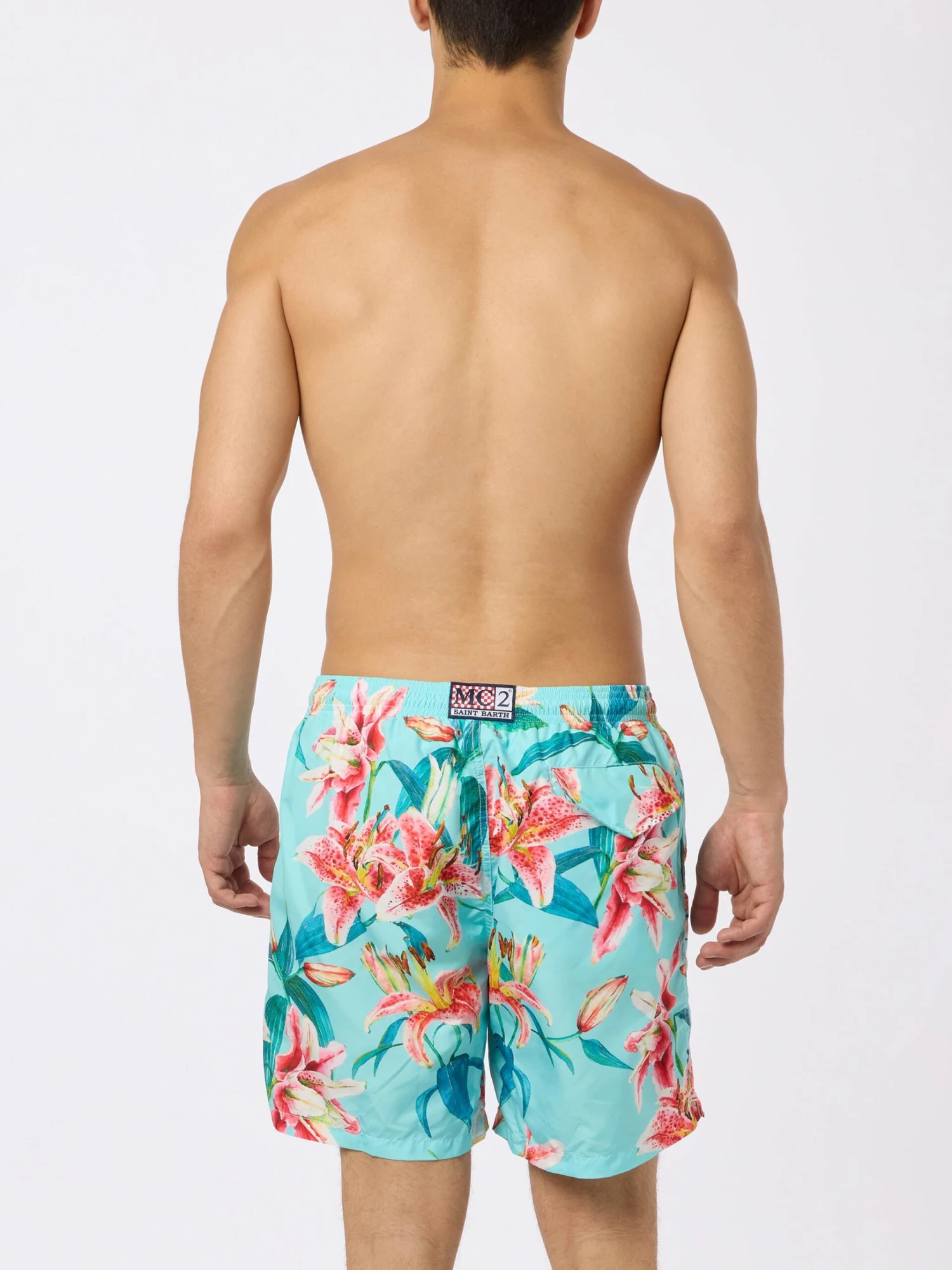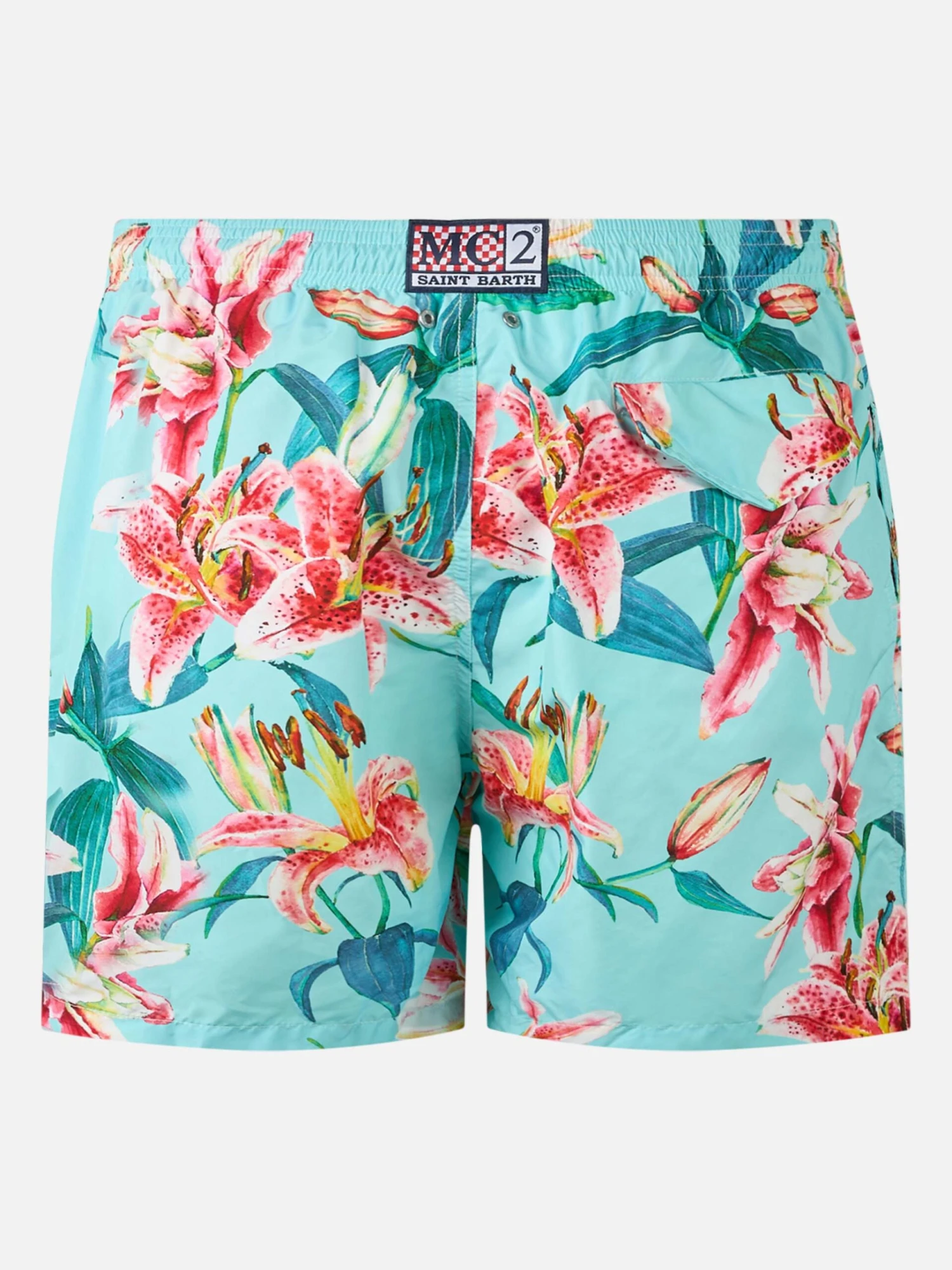 MC2 Saint Barth Man Lightweight Fabric Swim-shorts Lighting With Tropical Flowers Print