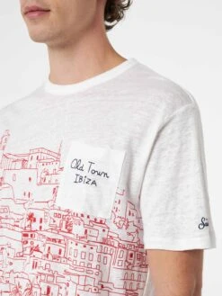 MC2 Saint Barth Man Linen Jersey T-shirt Ecstasea With Ibiza Placed Print And Embroidered Pocket
