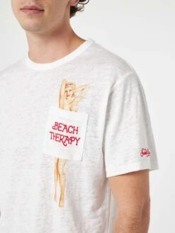 MC2 Saint Barth Man Linen Jersey T-shirt Ecstasea With Printed And Embroidered Pocket