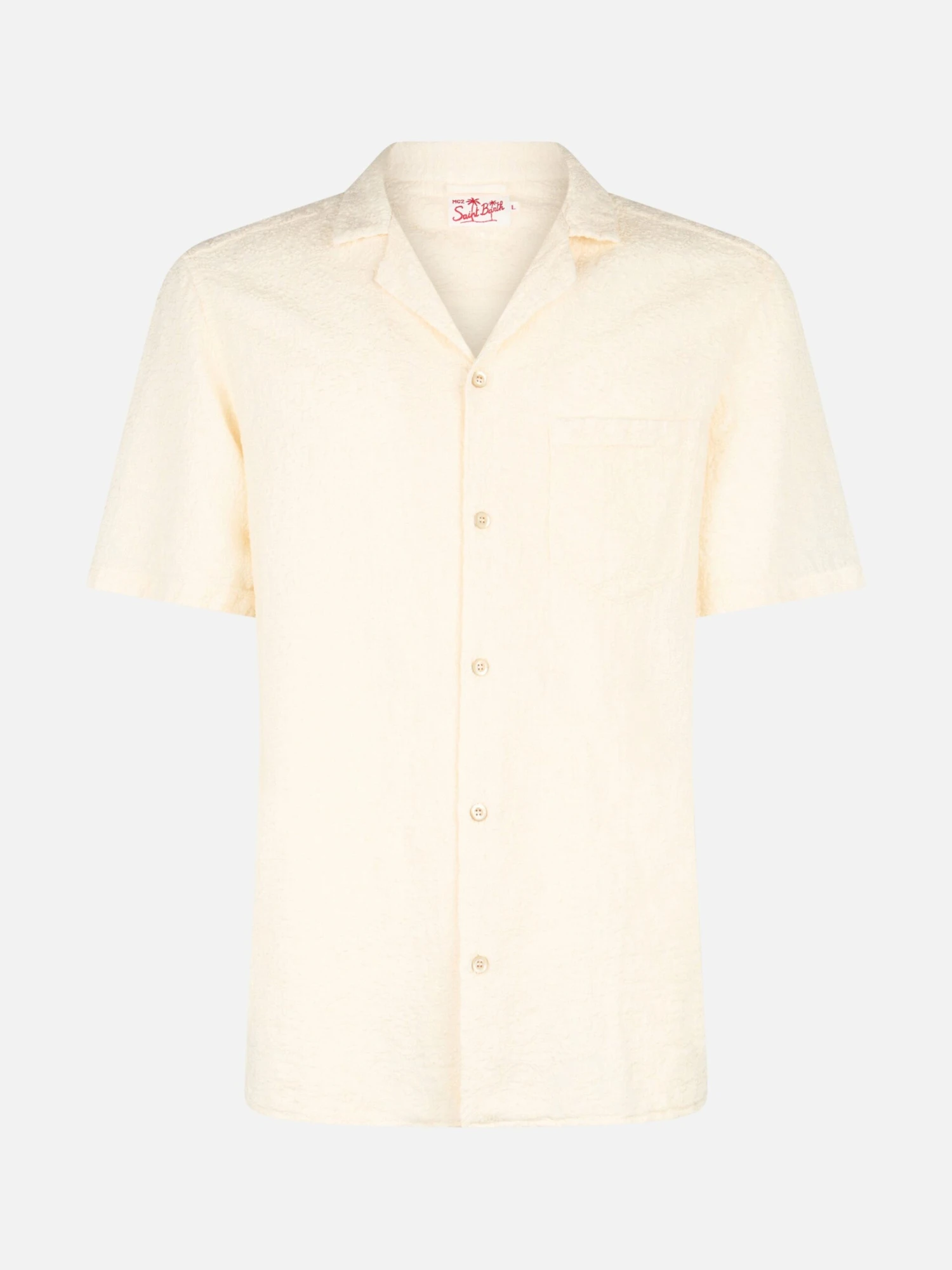 MC2 Saint Barth Man Linen Shirt Kalea With Flower Embroidery