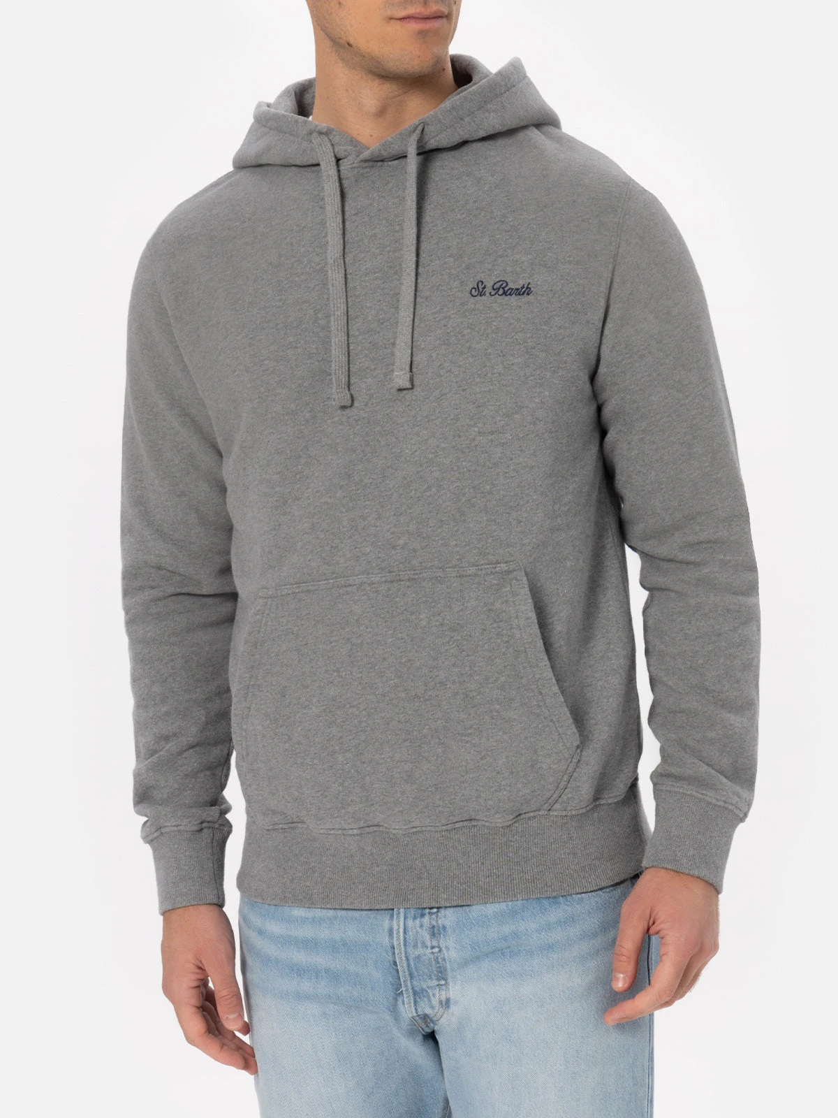 MC2 Saint Barth Man Mélange Grey Sweatshirt Tribeca With St. Barth Embroidery