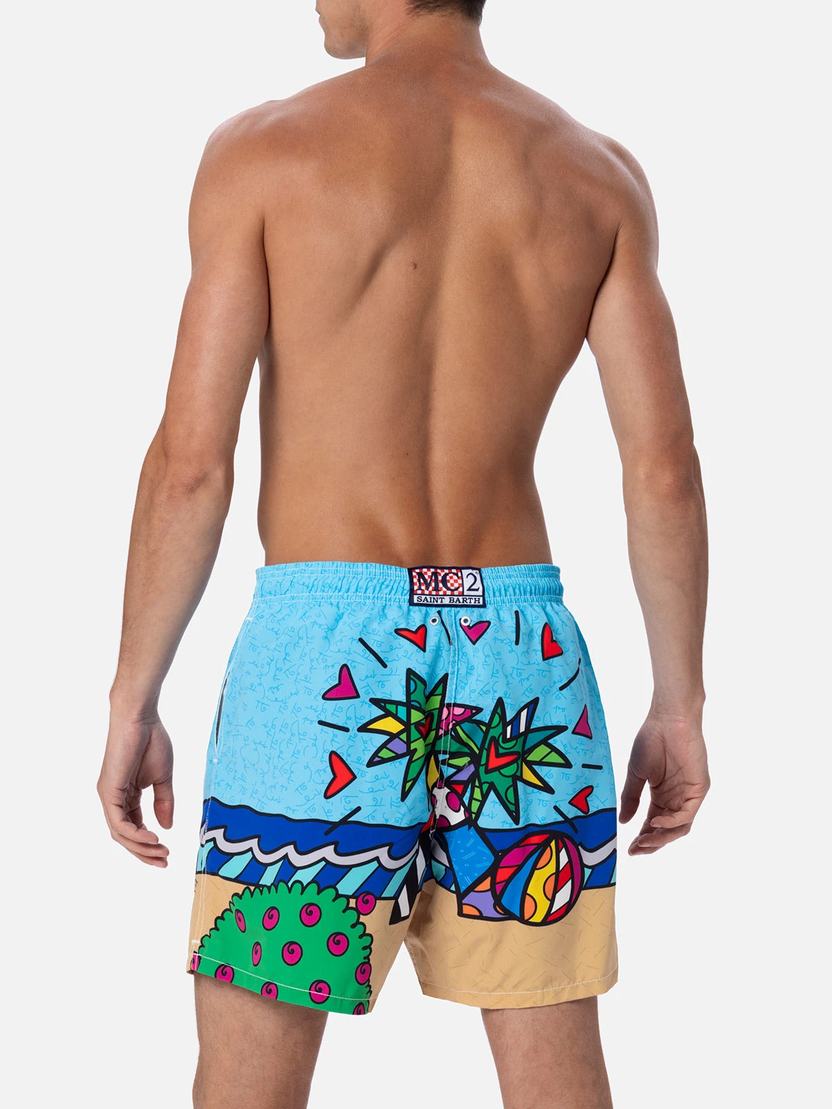MC2 Saint Barth Man Mid-length Gustavia Swim-shorts With Britto Design Placed Print| ©BRITTO SPECIAL EDITION