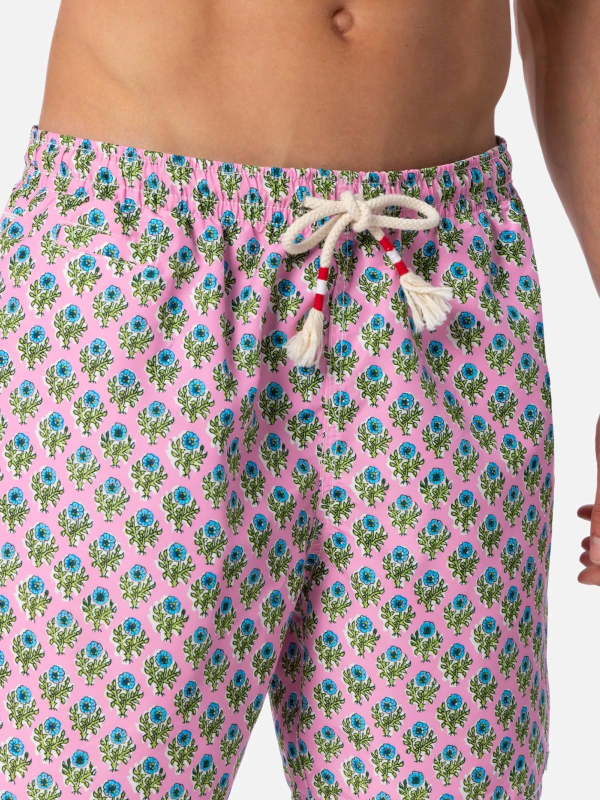 Fashion is in the sky, on the streets; fashion has to do with the world and the way we live in it and the elegance of Caprese swim shorts is inspired by the times of 1960s Capri. The colors always reflect those of the sea, the sky, the vegetation of the splendid nature of Capri; the prints recall its tradition and its mid-length is perfect for all shapes and sizes. The elasticated waistband makes it comfortable and provides a versatile fit; the white rope drawstring with red thread tip and the absence of metal components give it a retro touch. Elevate your style with the timeless elegance of the Caprese swim shorts, perfect for embodying the spirit of coastal sophistication wherever your adventures take you