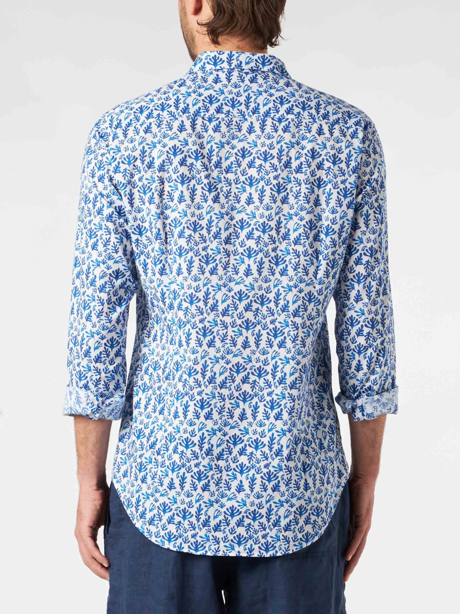 MC2 Saint Barth Man Muslin Cotton Sikelia Shirt With Blue Leaves Print