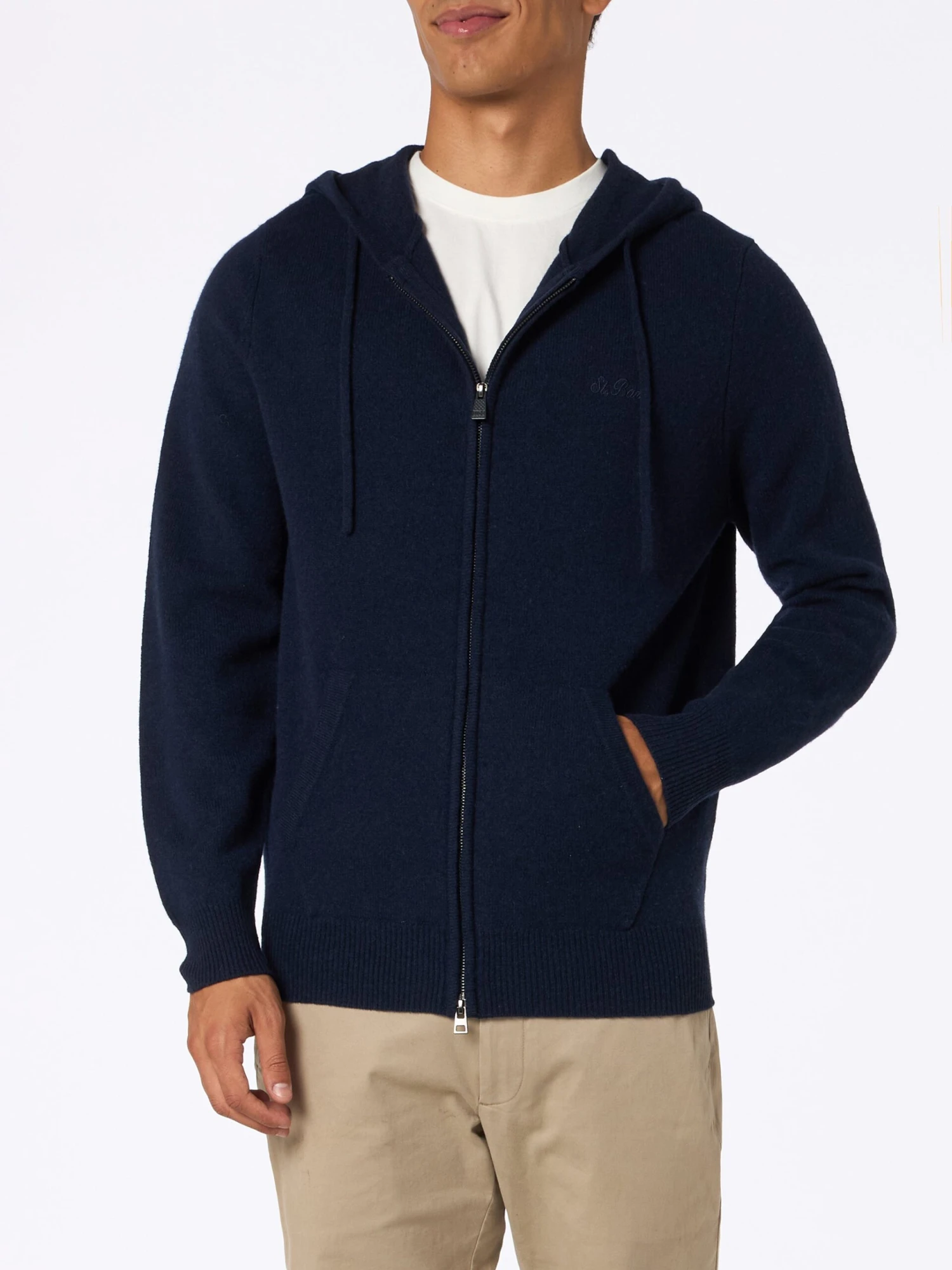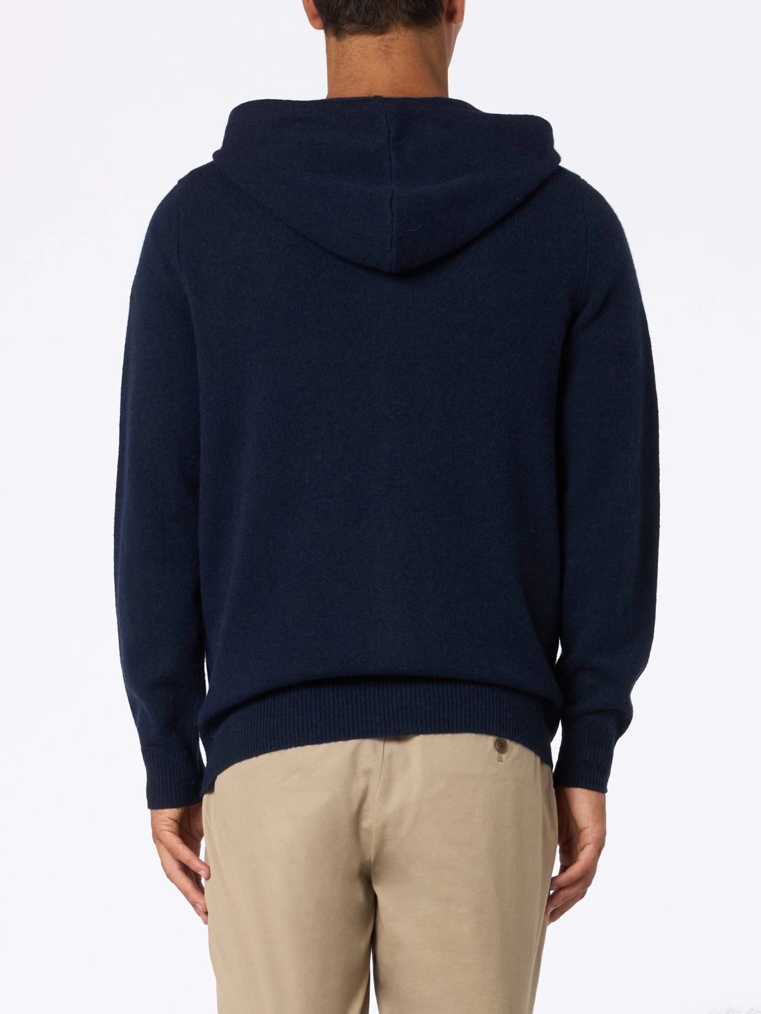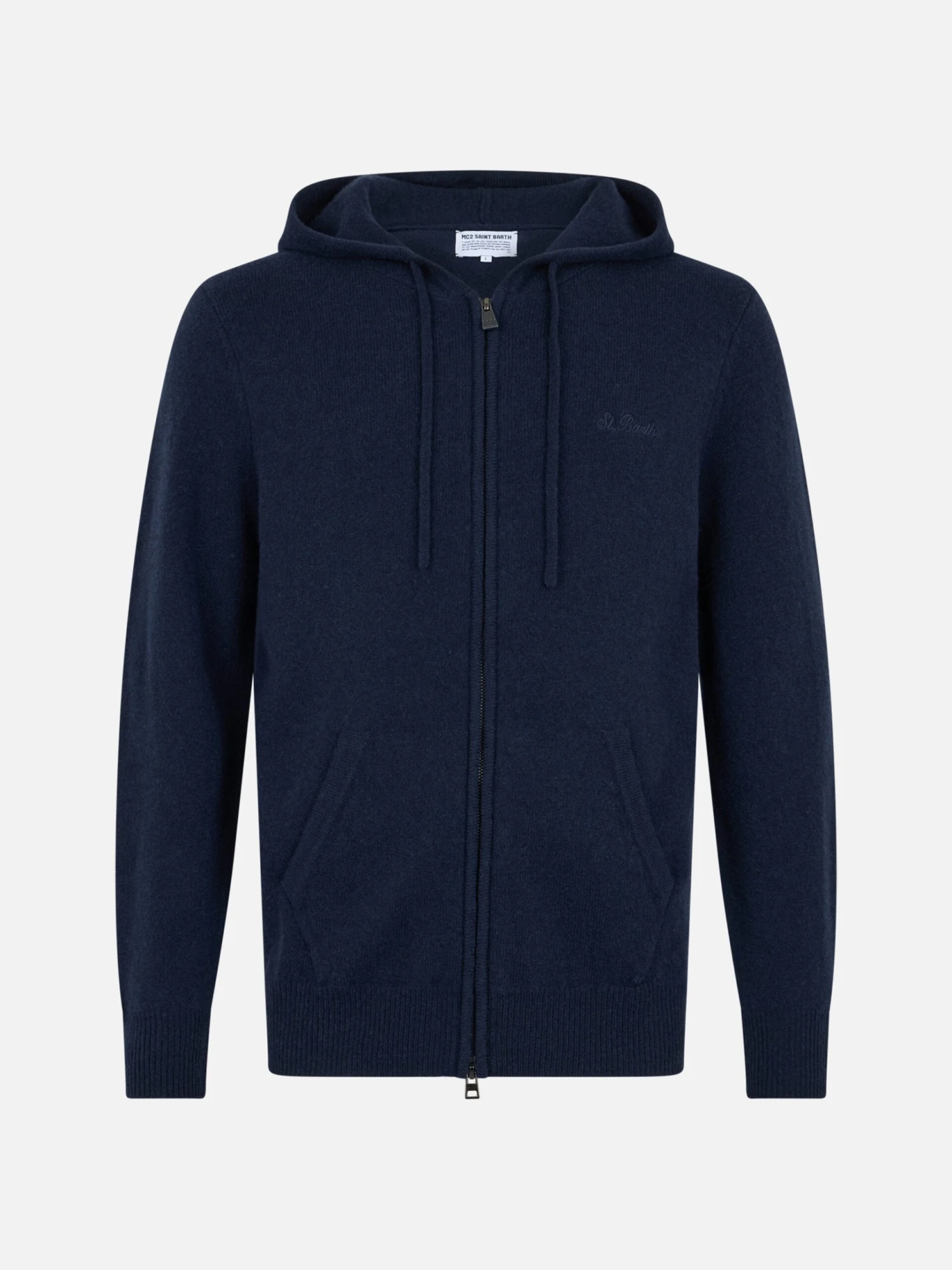 MC2 Saint Barth Man Navy Blue Lambswool Hooded Sweater Notting