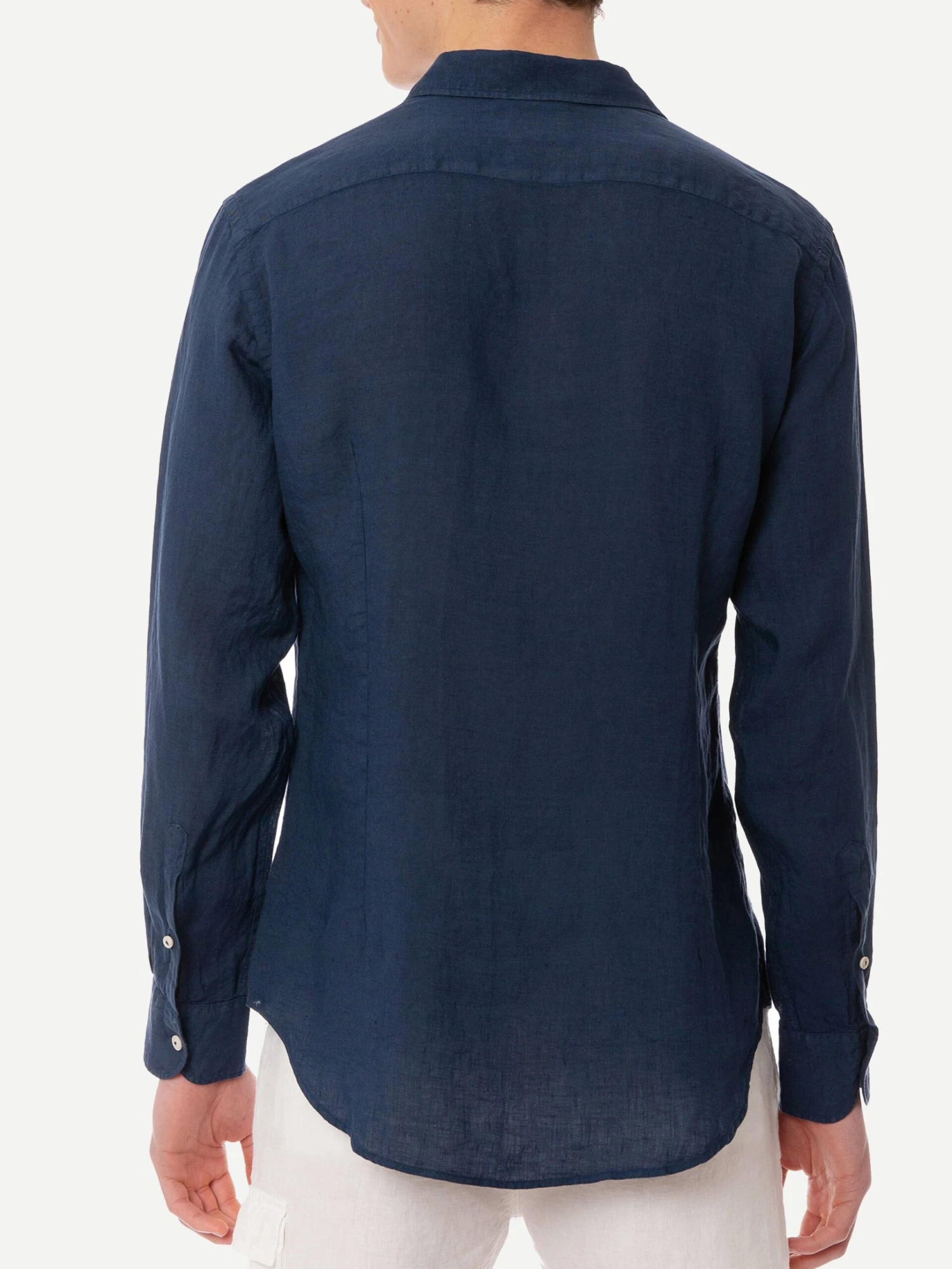 MC2 Saint Barth Man Navy Blue Linen Pamplona Shirt