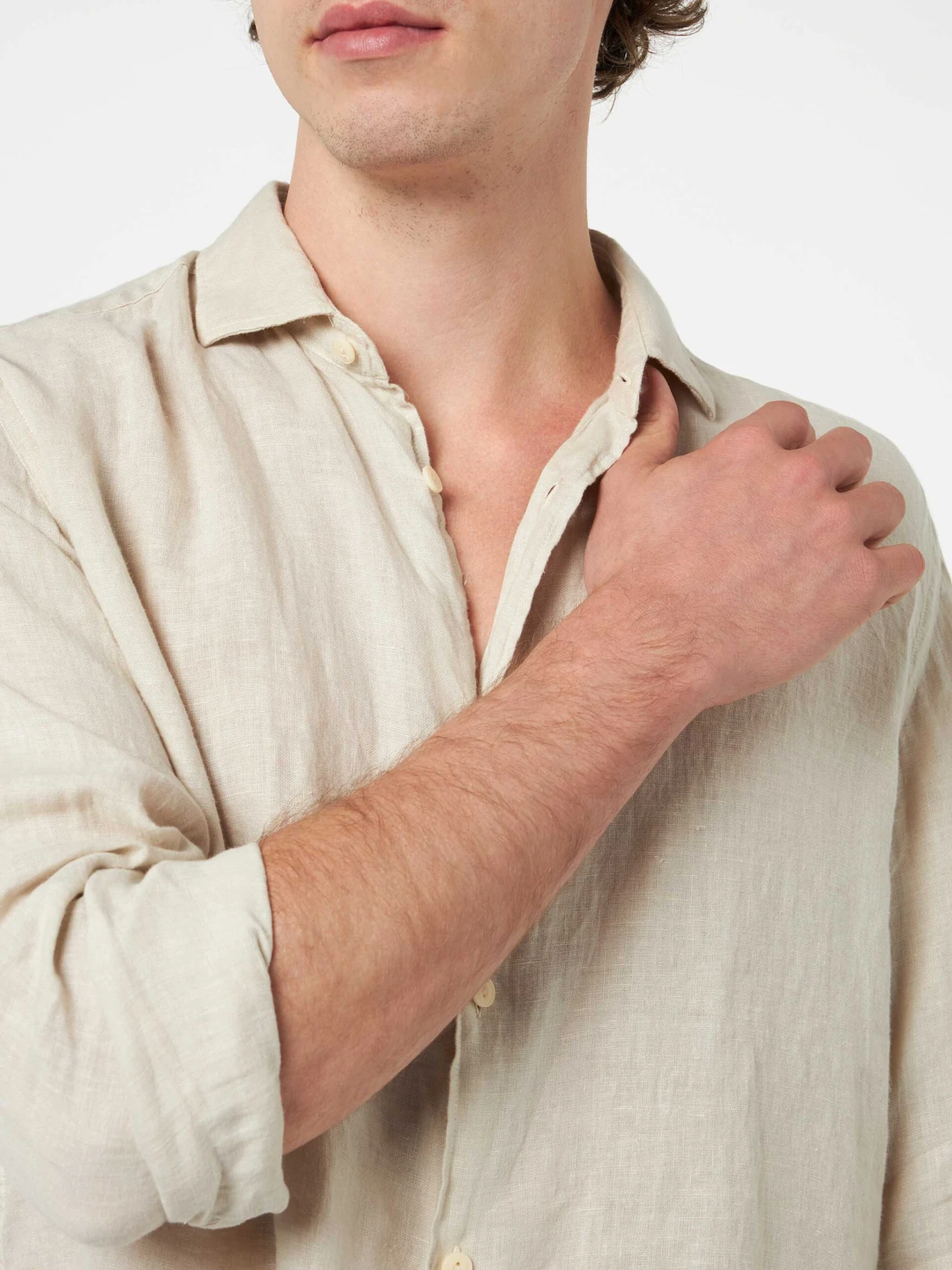 Introducing Pamplona, a classic from MC2 Saint Barth, essential in any man’s summer wardrobe. This men’s long-sleeve shirt is crafted from 100% garment-dyed linen, offering a subtle, washed effect and a soft feel. It features a regular fit with a French collar and custom 2-hole summarys. Lightweight, breathable and especially comfortable to wear, it’s the quintessential casual shirt, timeless and essential in all circumstances.