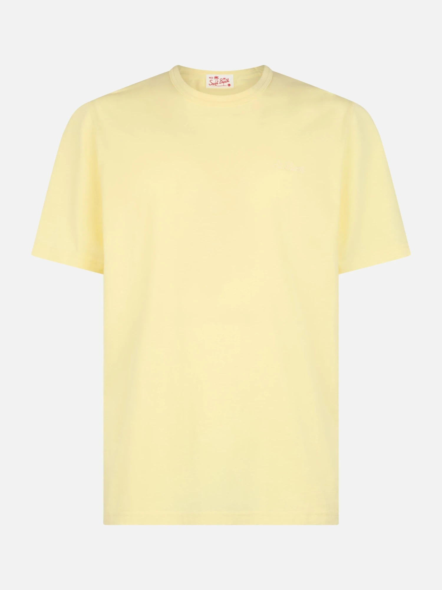 MC2 Saint Barth Man Pale Yellow Cotton Jersey T-shirt Dover With St. Barth Embroidery