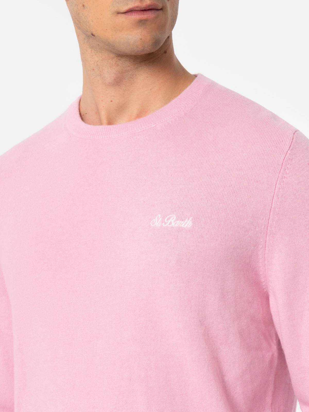 MC2 Saint Barth Man Pink Cashmere Blend Crewneck Sweater Regent