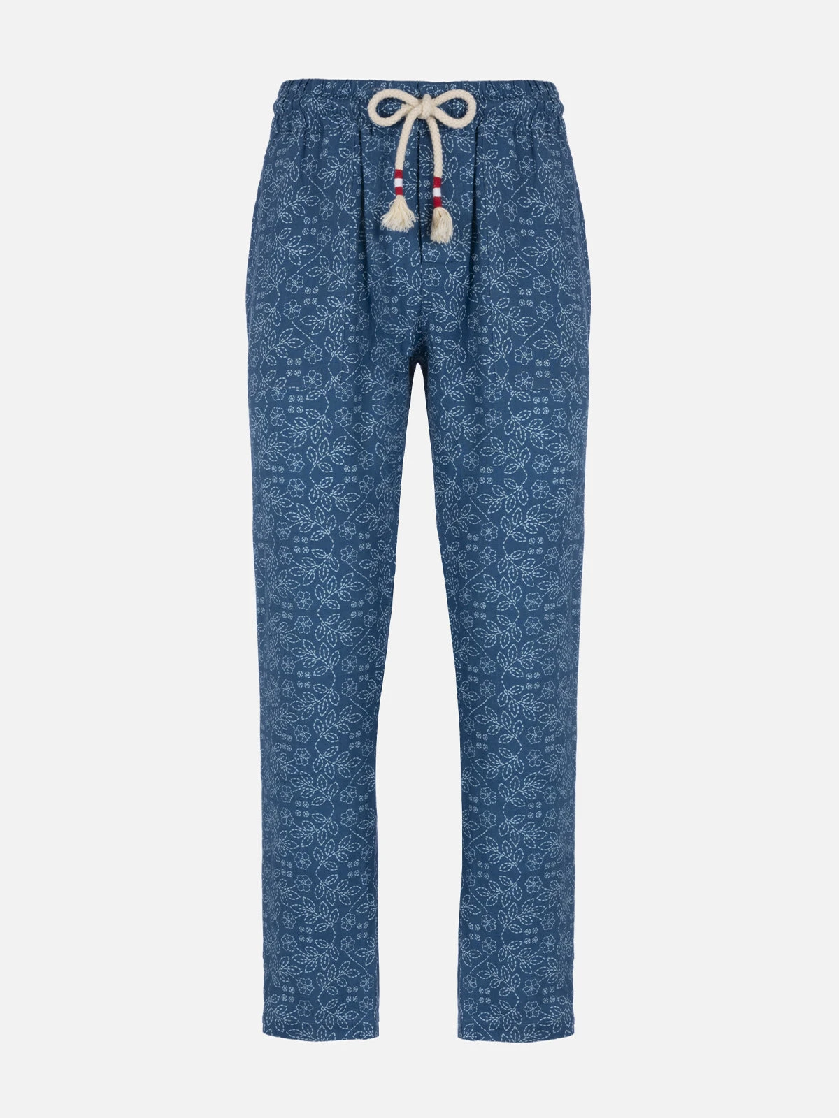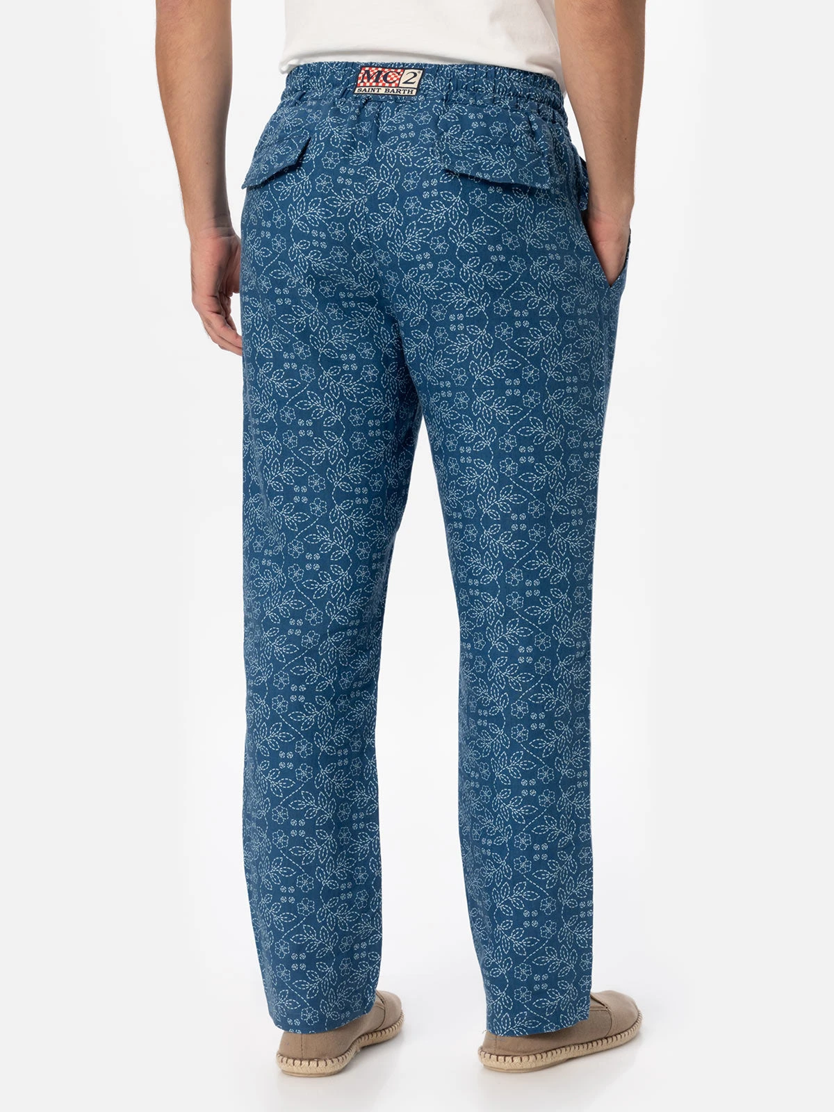MC2 Saint Barth Man Printed Linen Calais Pants With Drawstring