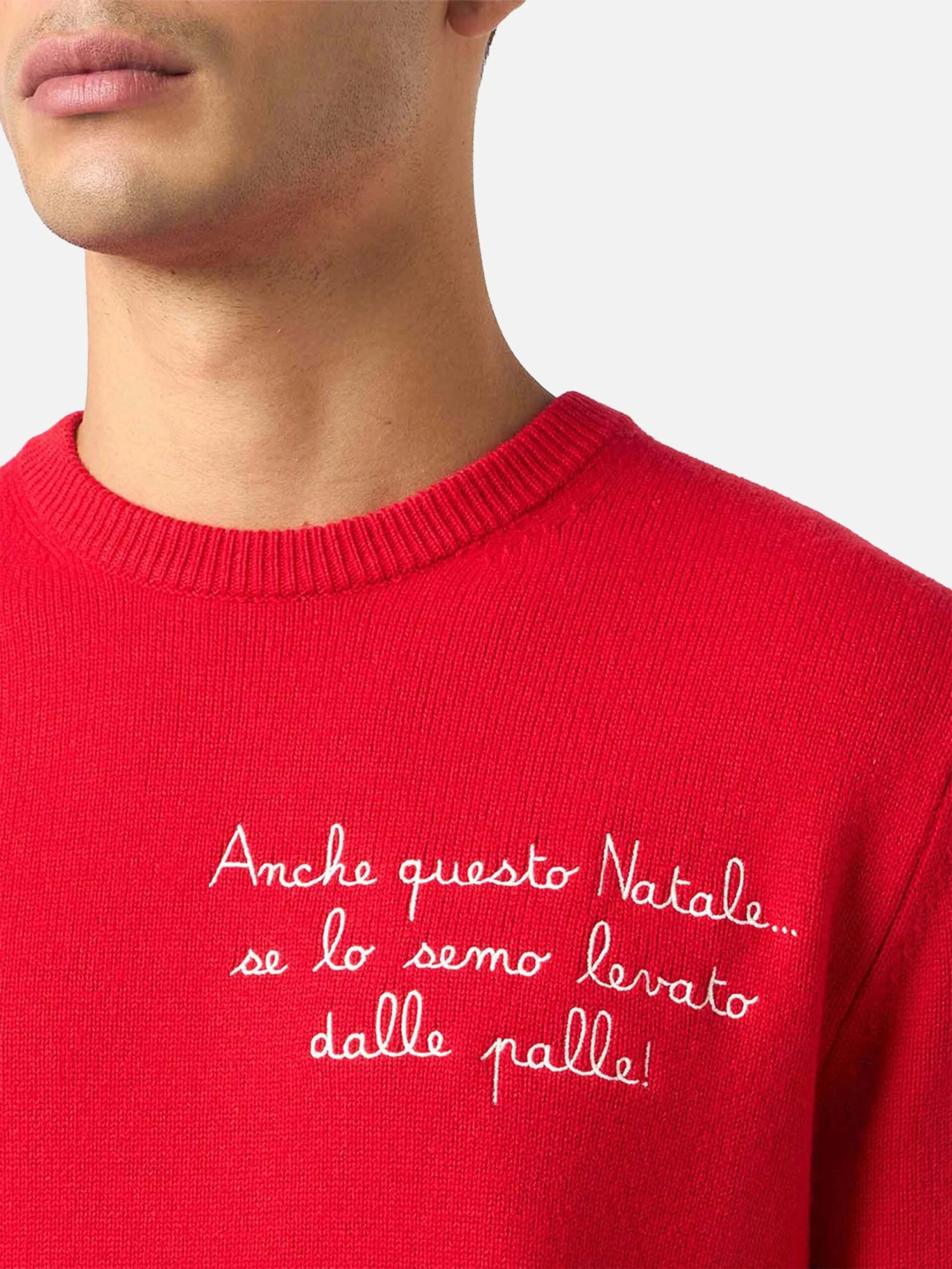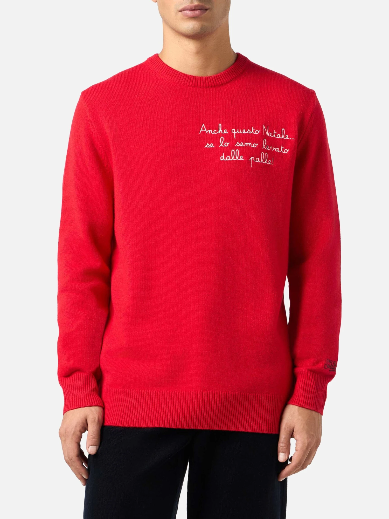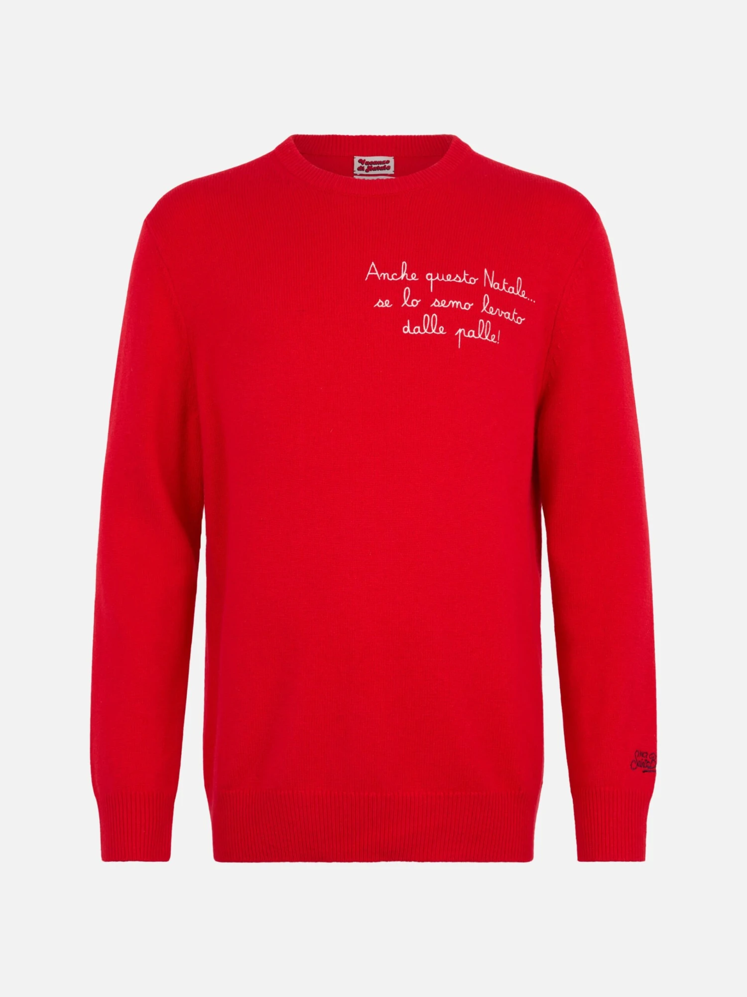 MC2 Saint Barth Man Red Sweater Heron With Anche Questo Natale… Embroidery | VACANZE DI NATALE SPECIAL EDITION