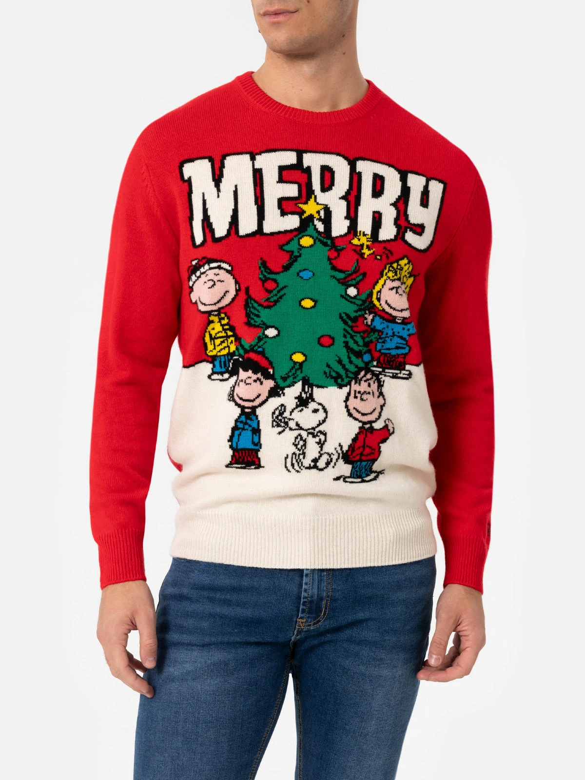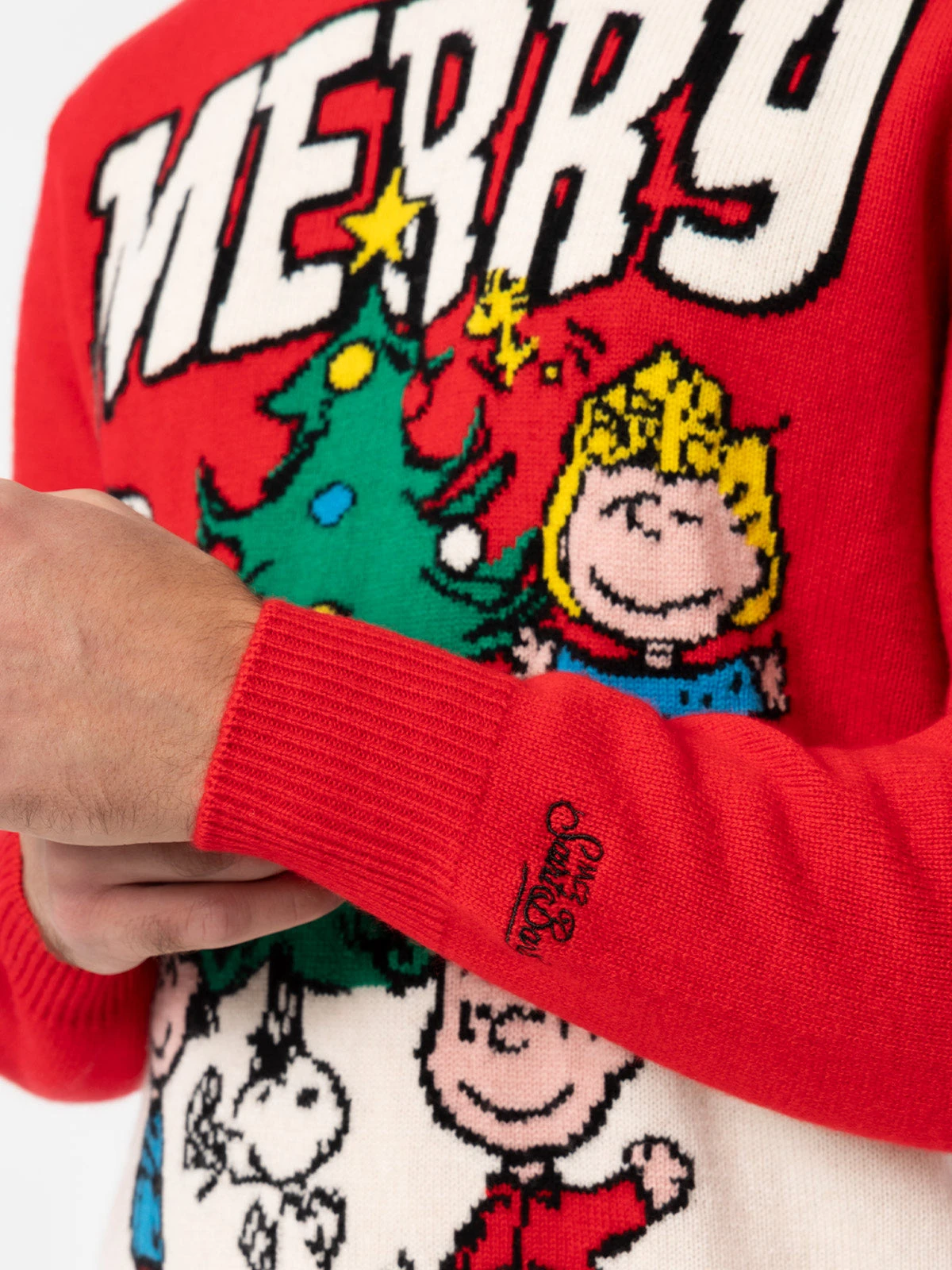 MC2 Saint Barth Man Red Sweater Heron With Peanuts Jacquard | SNOOPY PEANUTS SPECIAL EDITION