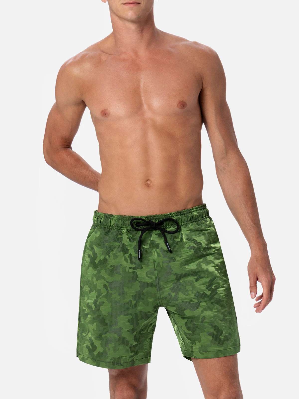 MC2 Saint Barth Man Ripstop Fabric Swim Shorts Harbour The Riviera With Camo Jacquard