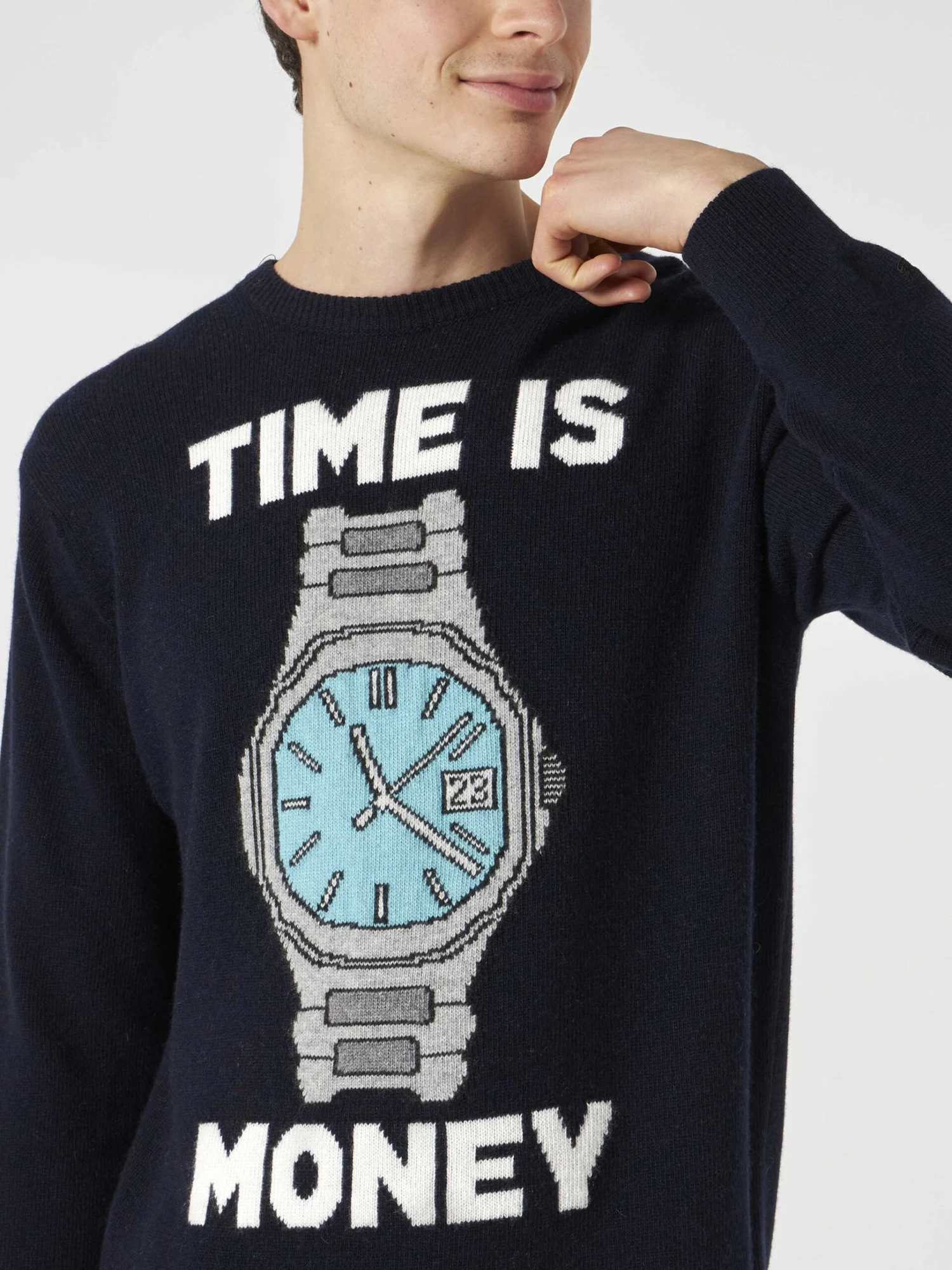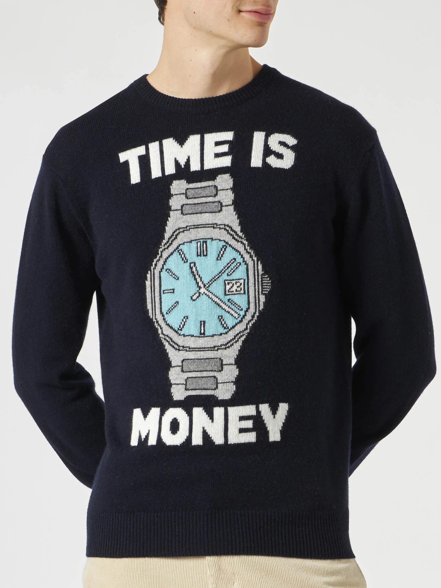 MC2 Saint Barth Man Sweater With Time Is Money Embroidery