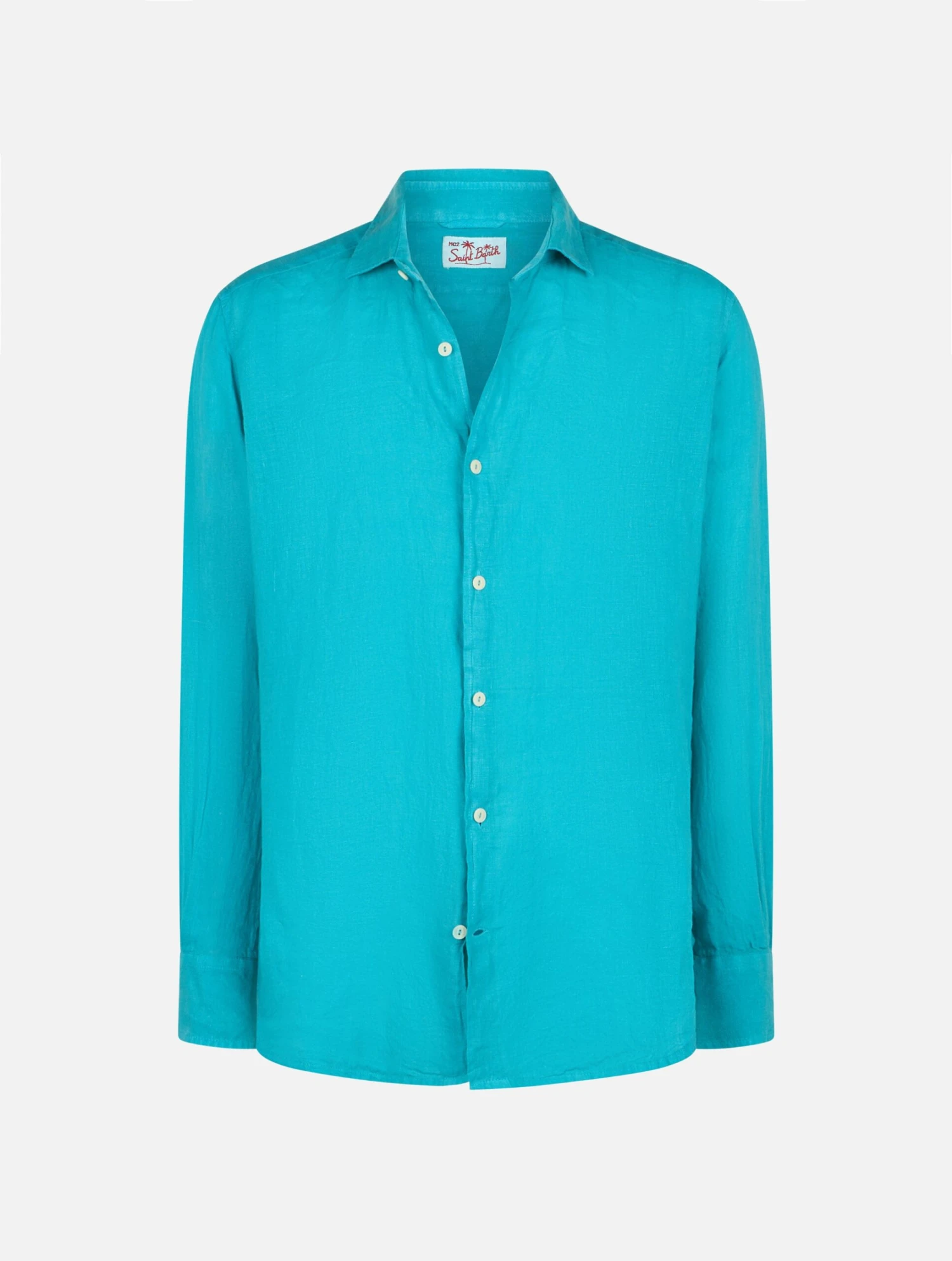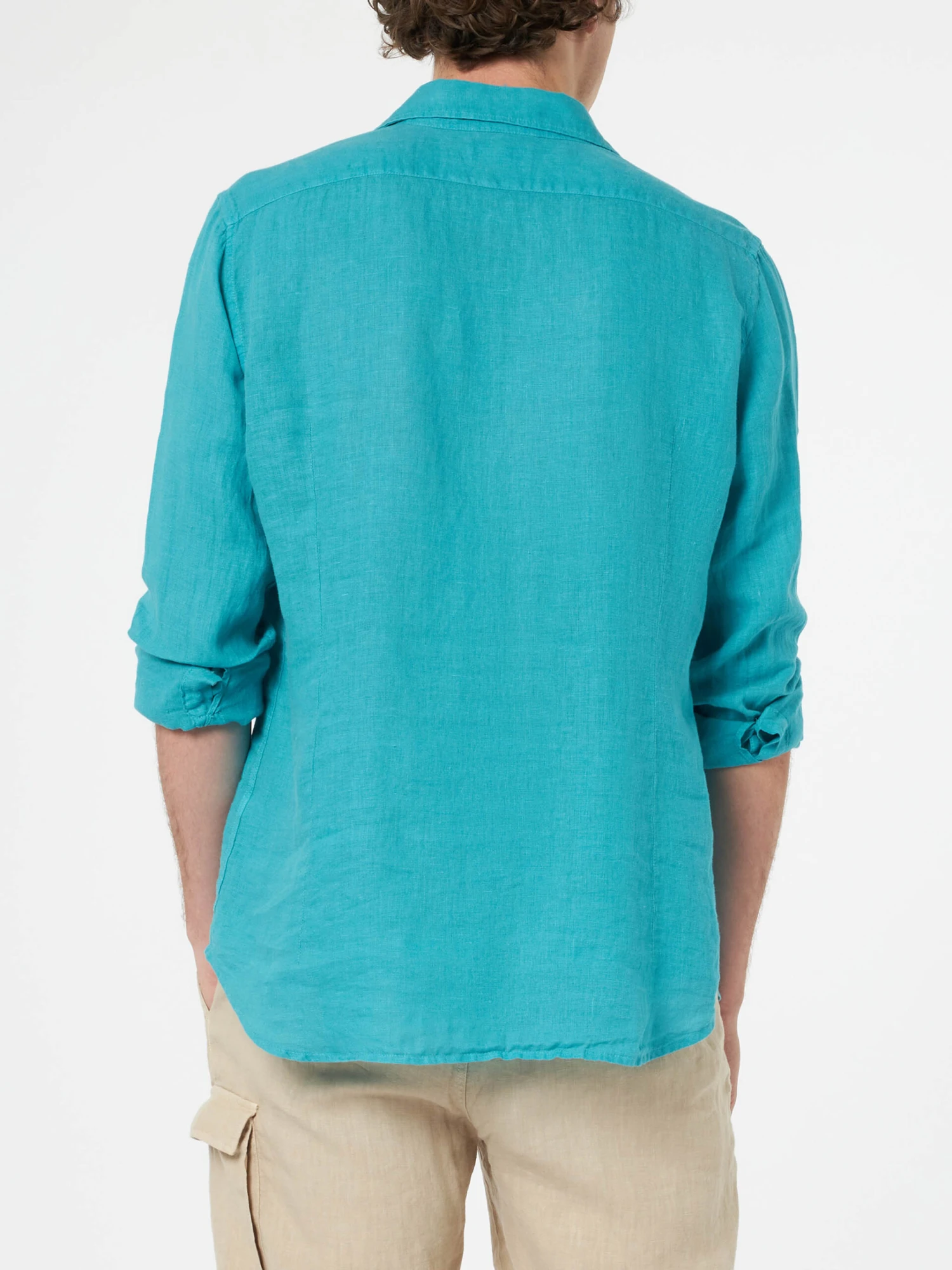 MC2 Saint Barth Man Teal Linen Shirt Pamplona