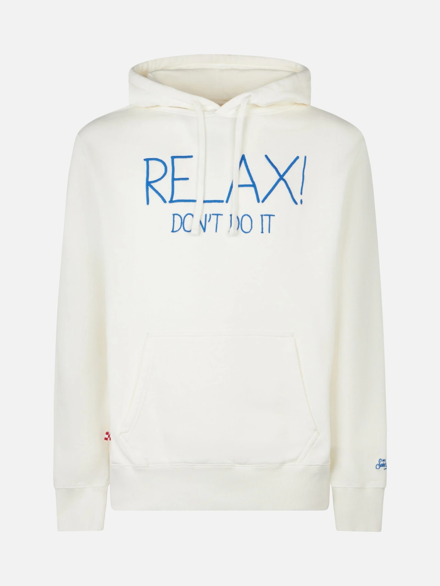 MC2 Saint Barth Man White Hoodie With Relax Don’t Do It Embroidery