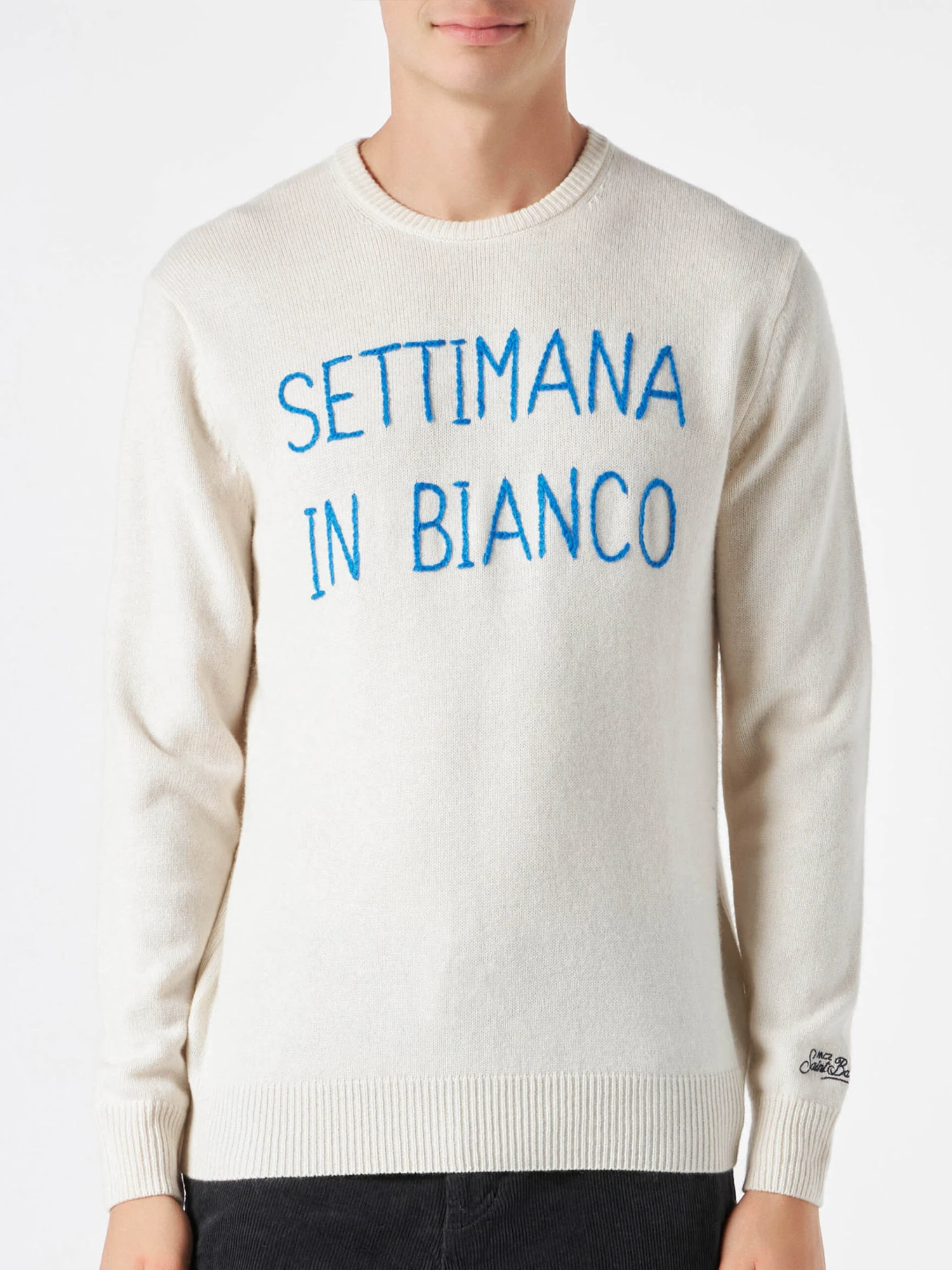 Be the first to review “MC2 Saint Barth Man White Sweater With Settimana In Bianco Embroidery” Cancel reply
