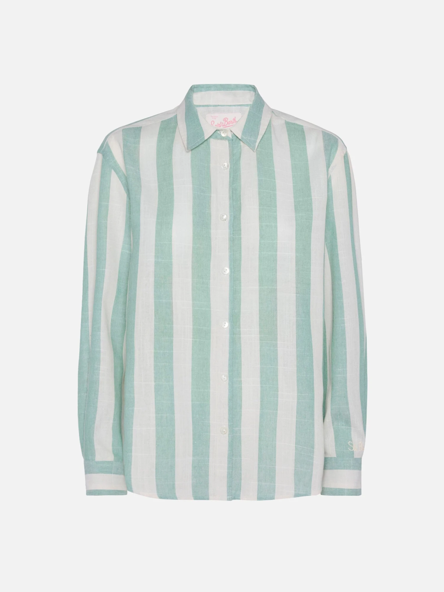 MC2 Saint Barth Meredith Classic Shirt With Sage Green Striped Print