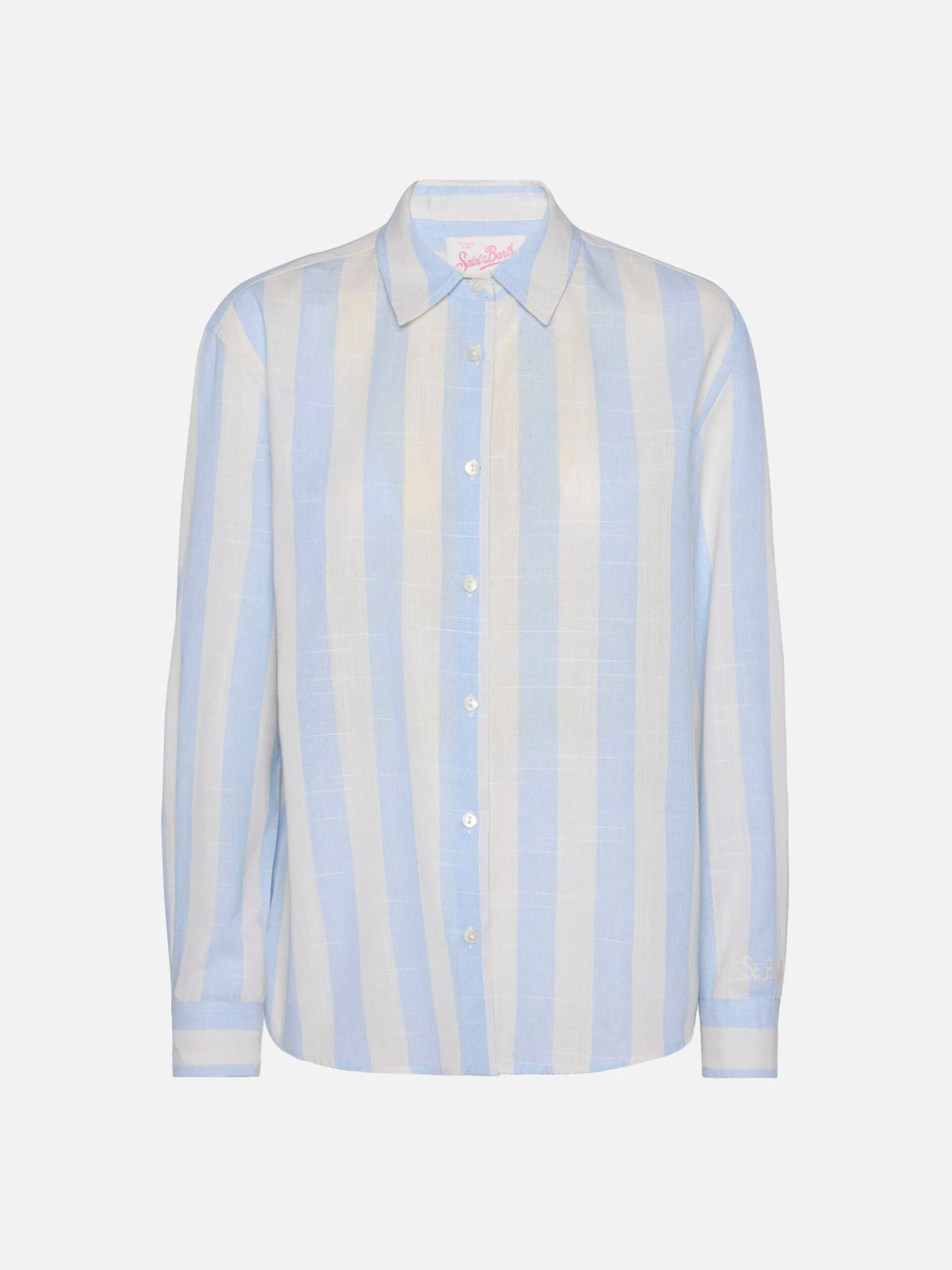 MC2 Saint Barth Meredith Cotton Classic Shirt With Light Blue Striped Print