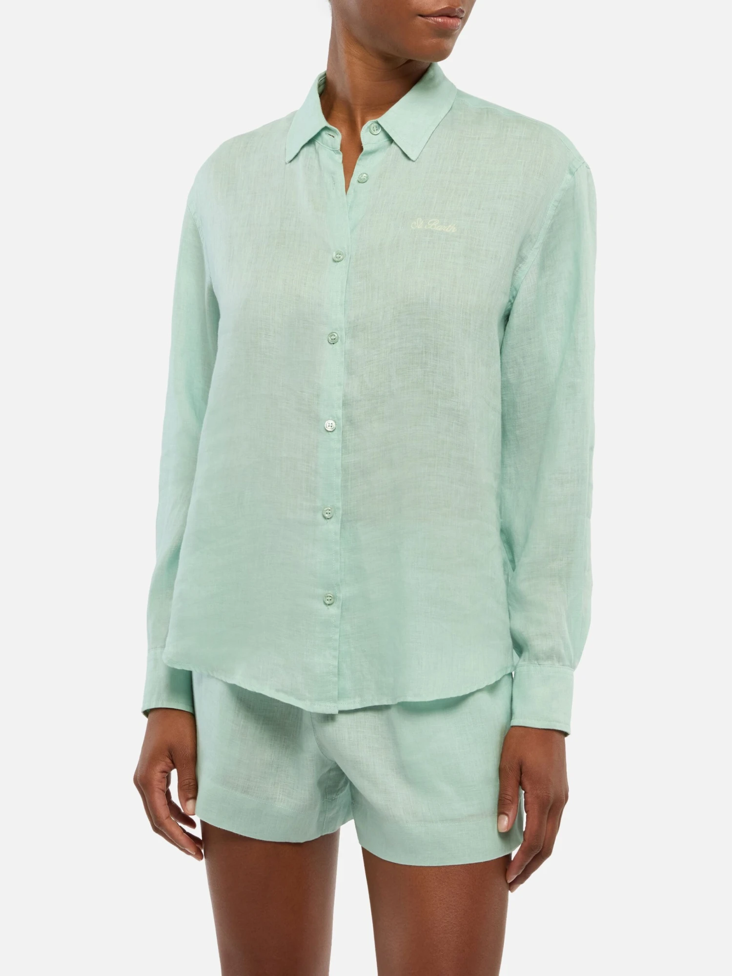 MC2 Saint Barth Meredith Linen Classic Shirt With Saint Barth Embroidery