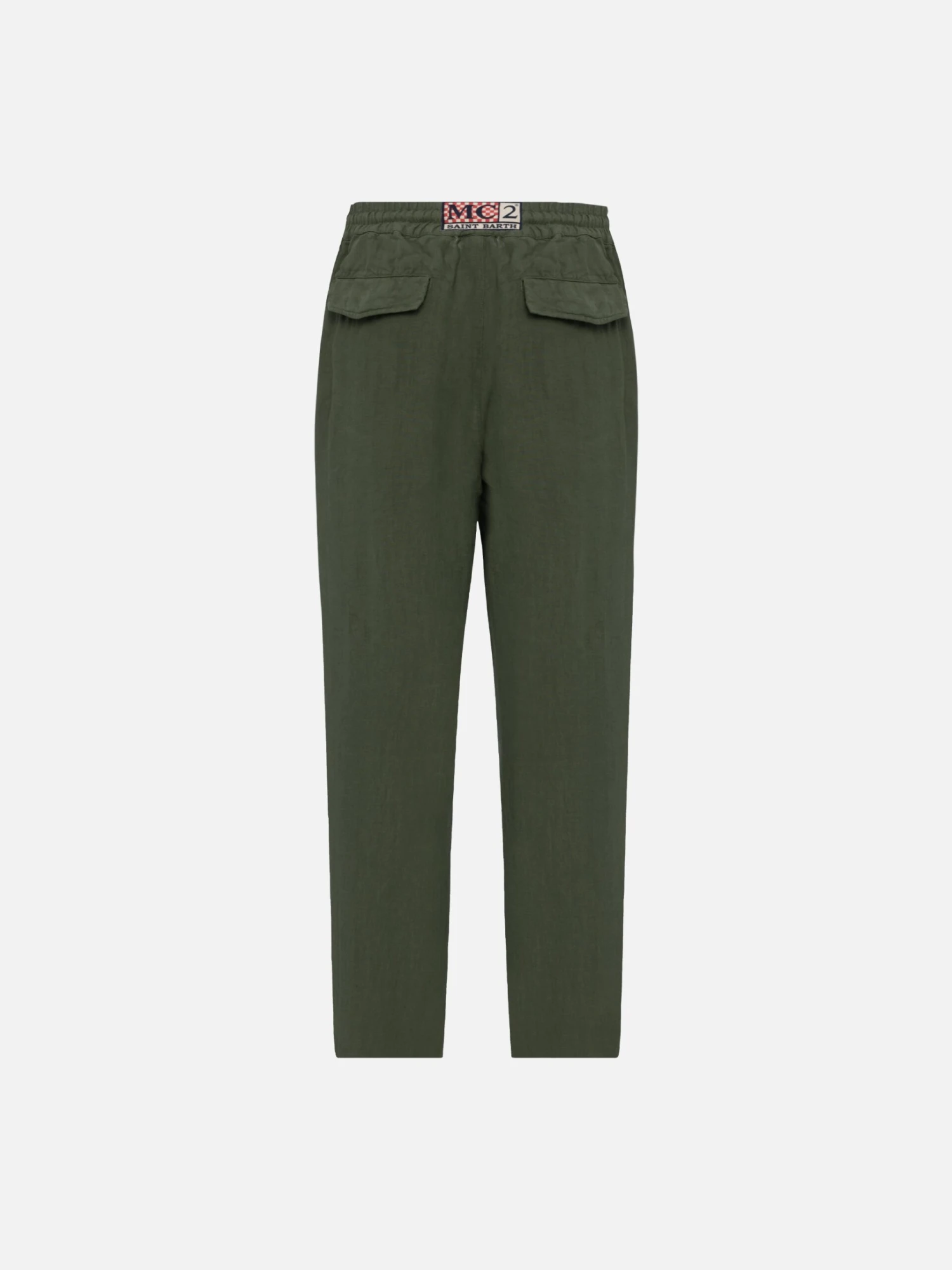 MC2 Saint Barth Military Green Linen Pants Calais With Drawstring