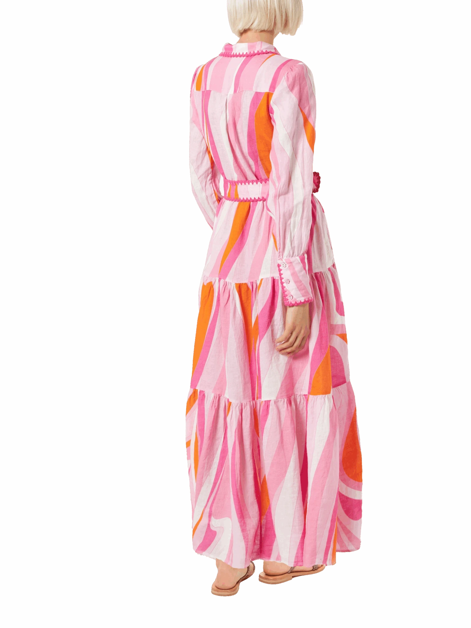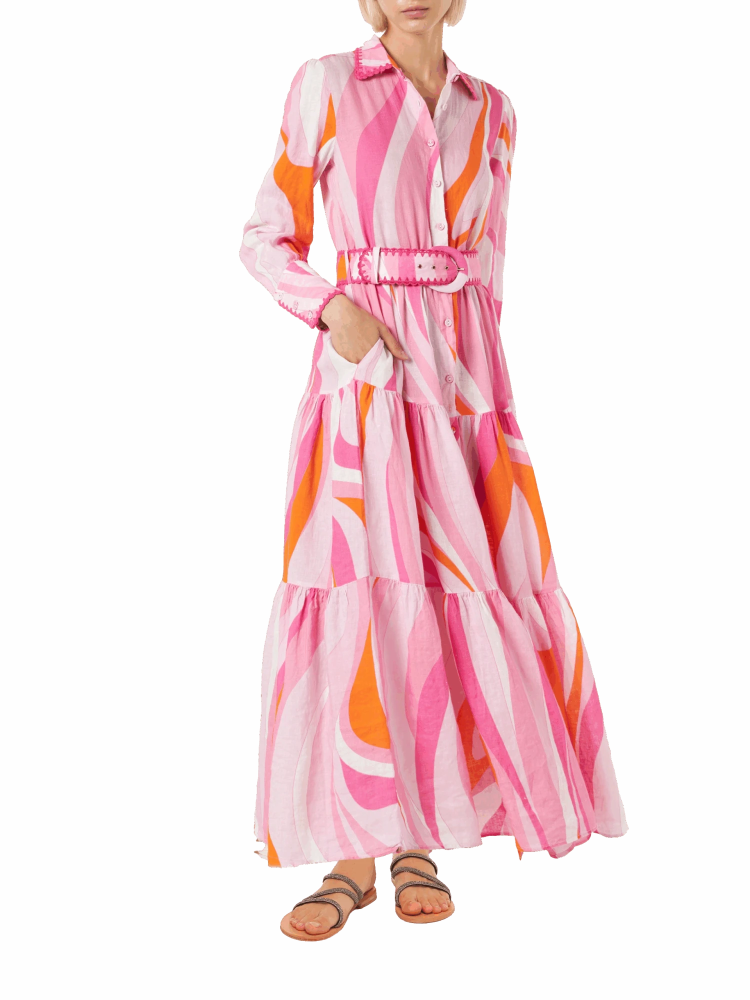 Ruffled long dress with belt