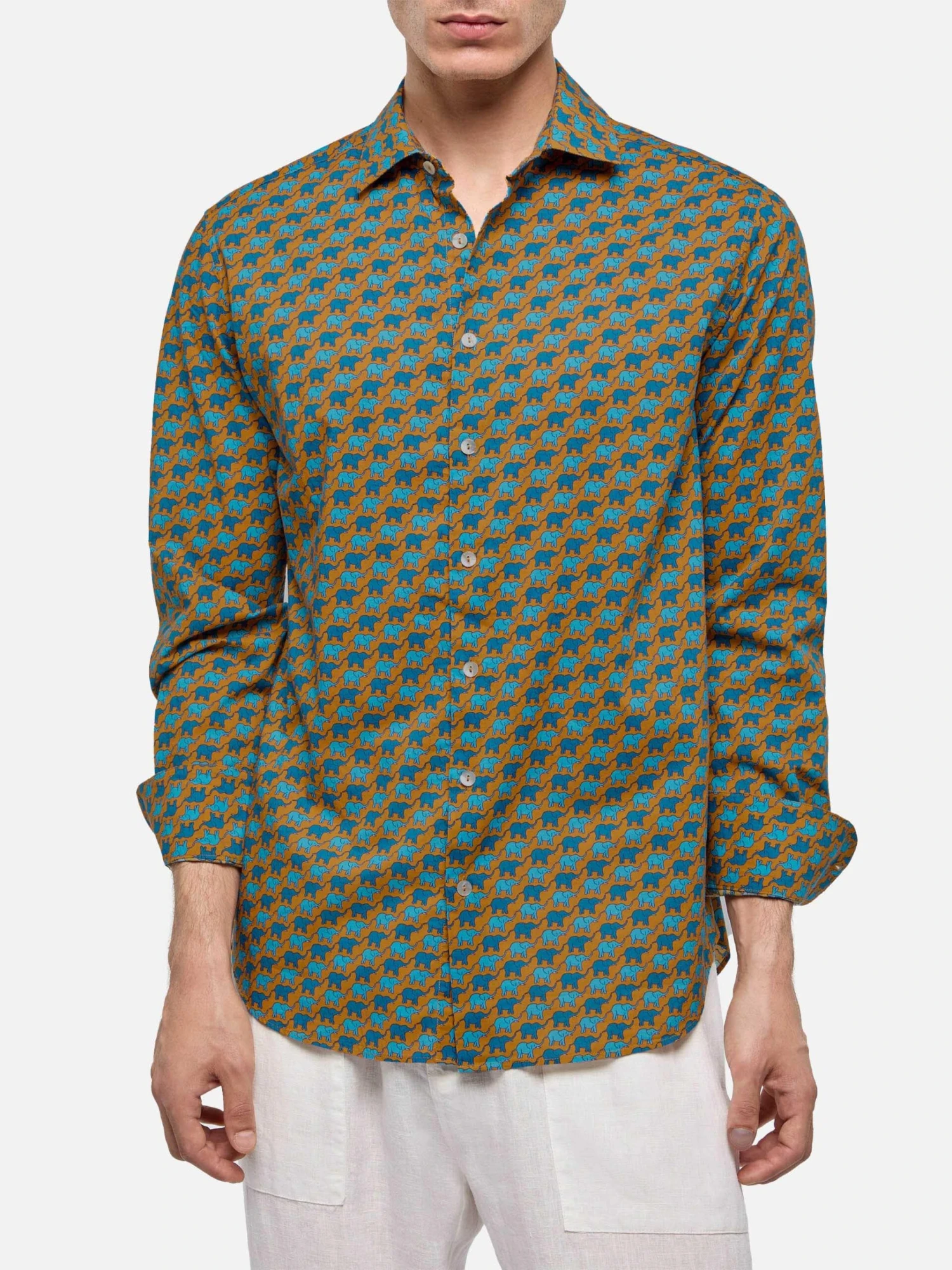 Introducing the Sikelia shirt, adorned with charming all-over micro-patterns, perfect for a shabby chic style. Crafted from lightweight 100% cotton muslin, this men’s long-sleeve shirt features a regular fit and an Italian collar, exuding a relaxed and effortlessly stylish vibe. The breathable fabric ensures comfort in warmer climates, making it an ideal choice for both casual and semi-formal occasions. The subtle yet intricate all over micro print print adds a touch of sophistication to any ensemble, making the Sikelia shirt a versatile and timeless addition to your wardrobe.