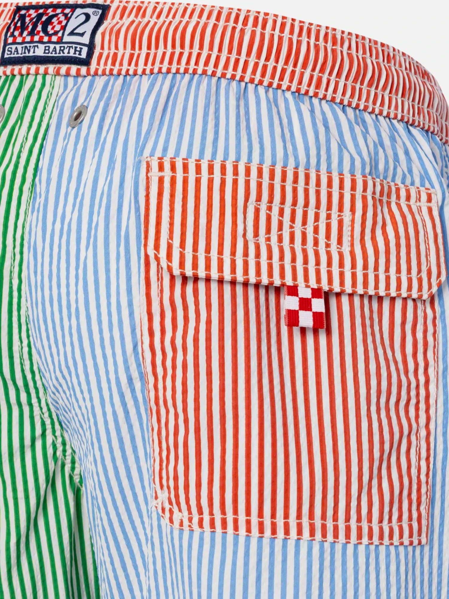 MC2 Saint Barth Patmos Jr Seersucker Striped Mid-length Swim Shorts