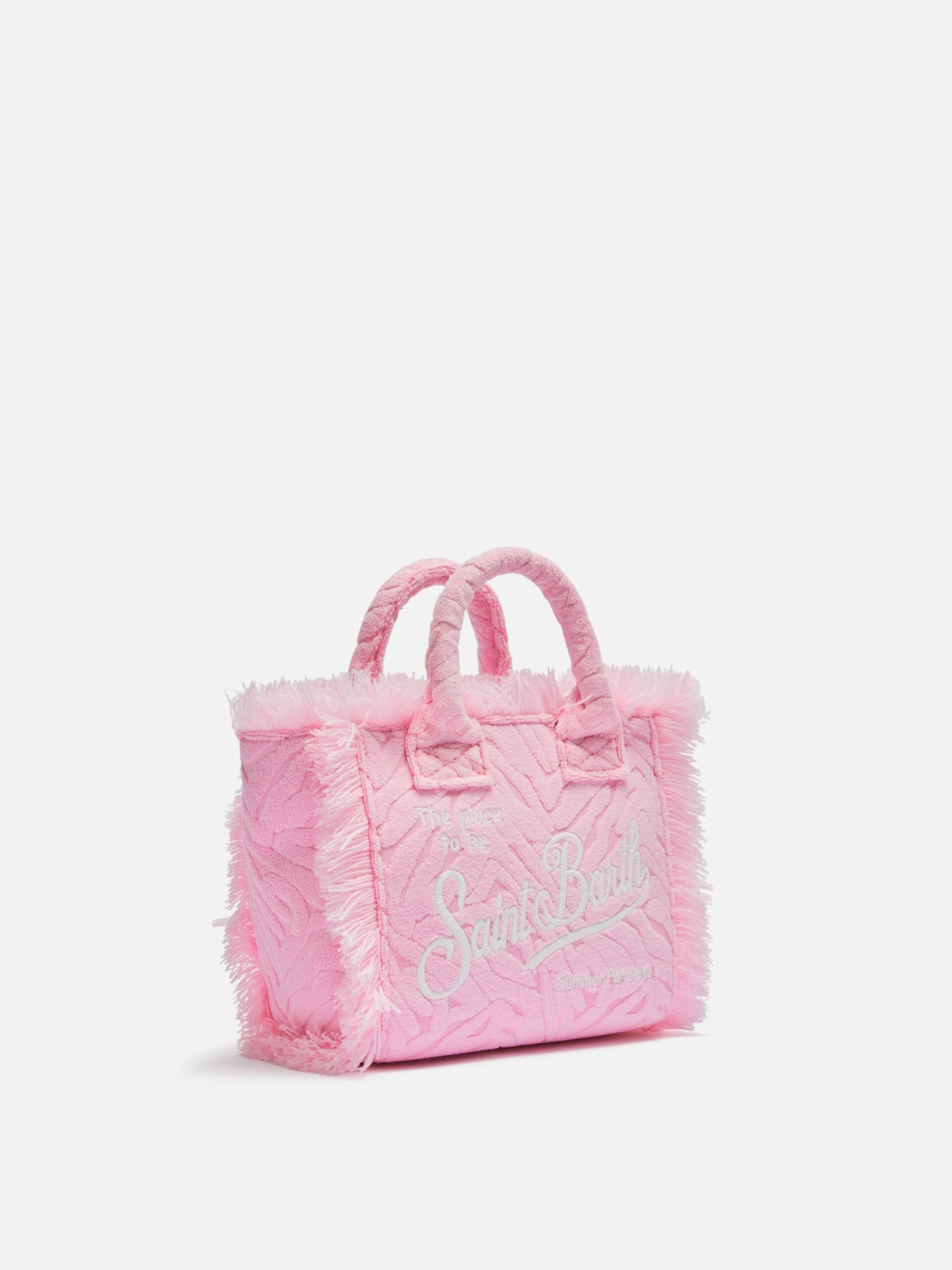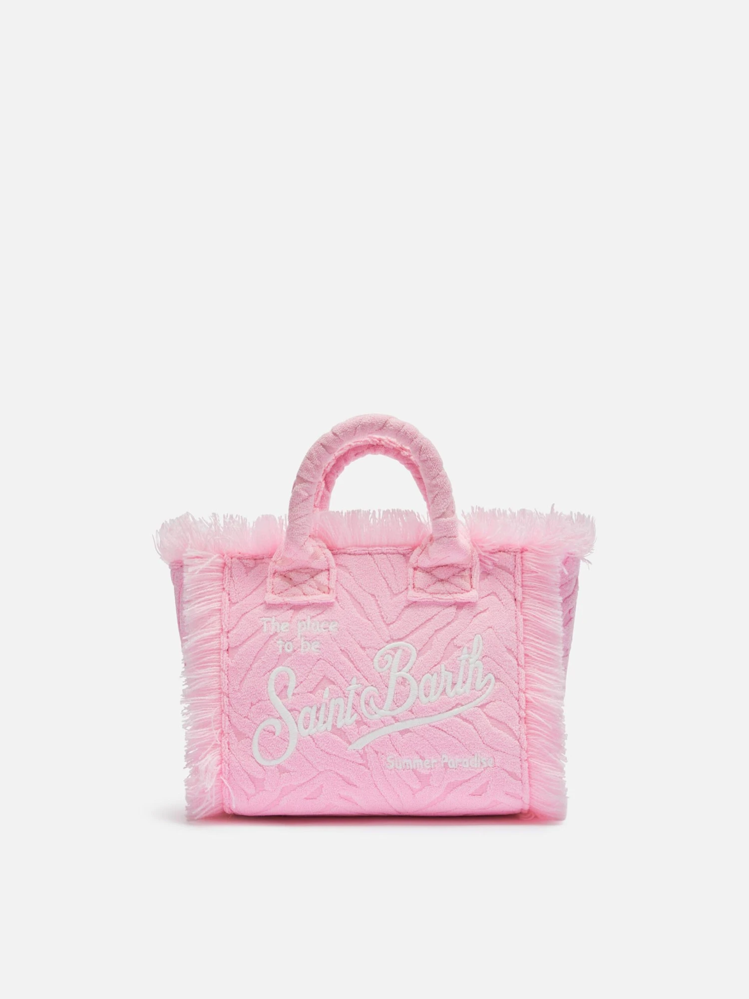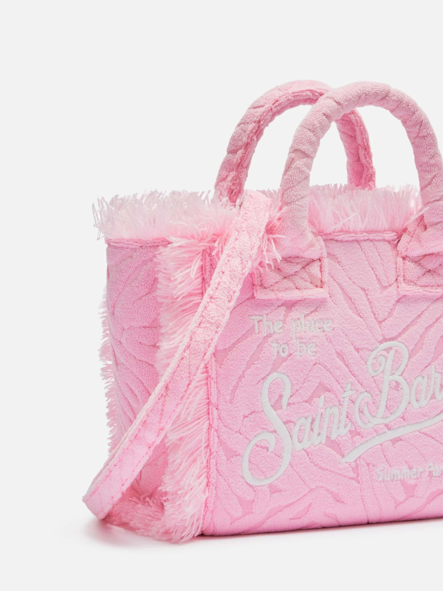 Introducing our Mini Vanity Terry Bag, a chic and versatile accessory crafted from soft terry fabric. Compact yet spacious, it features a removable shoulder strap for multiple carrying options. Available in a variety of colors, this refined bag seamlessly combines comfort and style, making it perfect for any occasion.