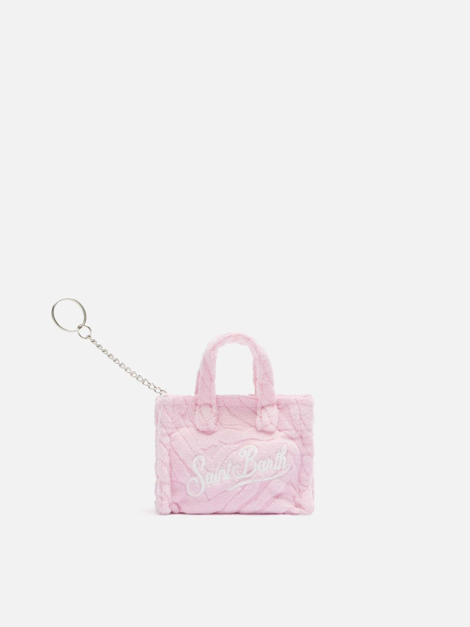 Introducing our Key Bag, a compact accessory inspired by the Vanity design. Made from premium terry fabric, it combines practicality and style with its refined structure and exclusive Saint Barth logo embroidery. Featuring a key ring, zipper closure, and an inner zipped pocket, this chic key holder adds a touch of elegance to your daily essentials.