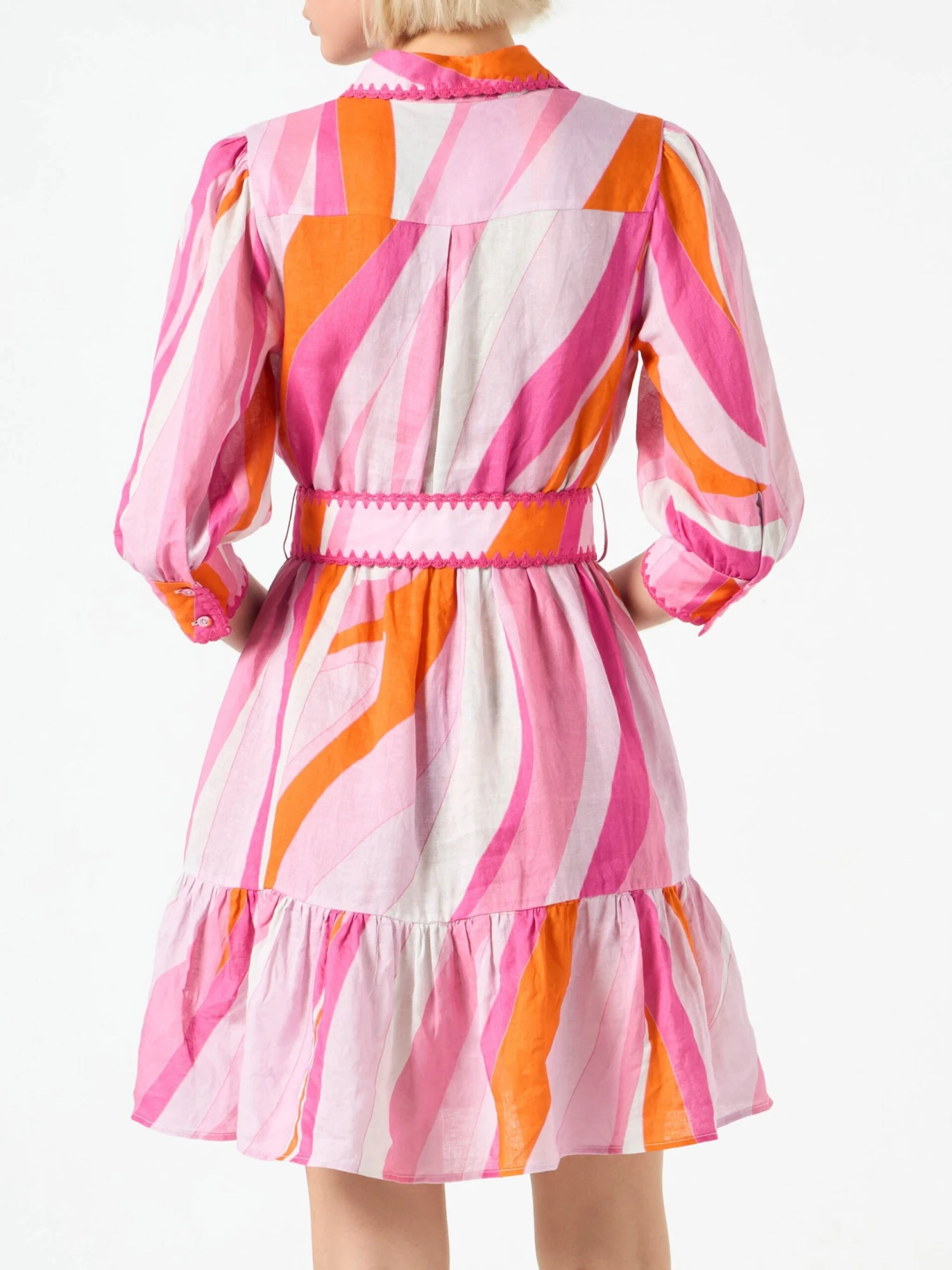 MC2 Saint Barth Shape Wave Print Linen Short Dress Daisi
